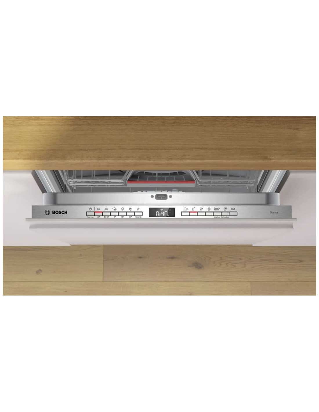 Bosch Serie 4 SBH4HVX14E. Tipo de instalación: Completamente integrado, Talla del producto: Tamaño completo (60 cm), Color de la puerta: Blanco. Número de cubiertos: 14 cubiertos, Clase de emisión de ruido: C, Nivel de ruido: 46 dB. Aplicaciones de control compatibles: Home Connect. Clase de eficiencia de energía: C, Consumo de agua por ciclo de lavado: 9 L, Consumo de energía por 100 ciclos: 75 kWh. Ancho: 598 mm, Profundidad: 550 mm, Altura: 865 mm
