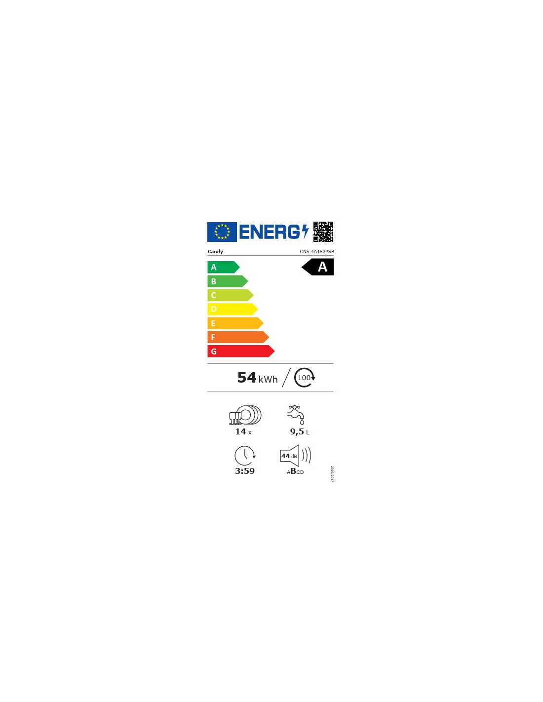 Lavavajillas 60 INT Candy CNS4A4S3PSB, integrable, clase energetica "A, 14 servicicios, Control a distancia ( WIFI + BLUETOOTH), Motor Inverter, 44dBa, Smart Door (apertura puerta), puerta deslizante