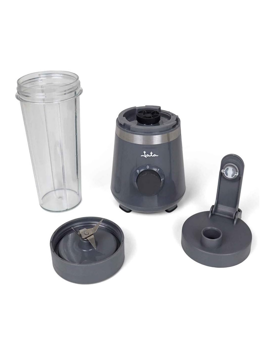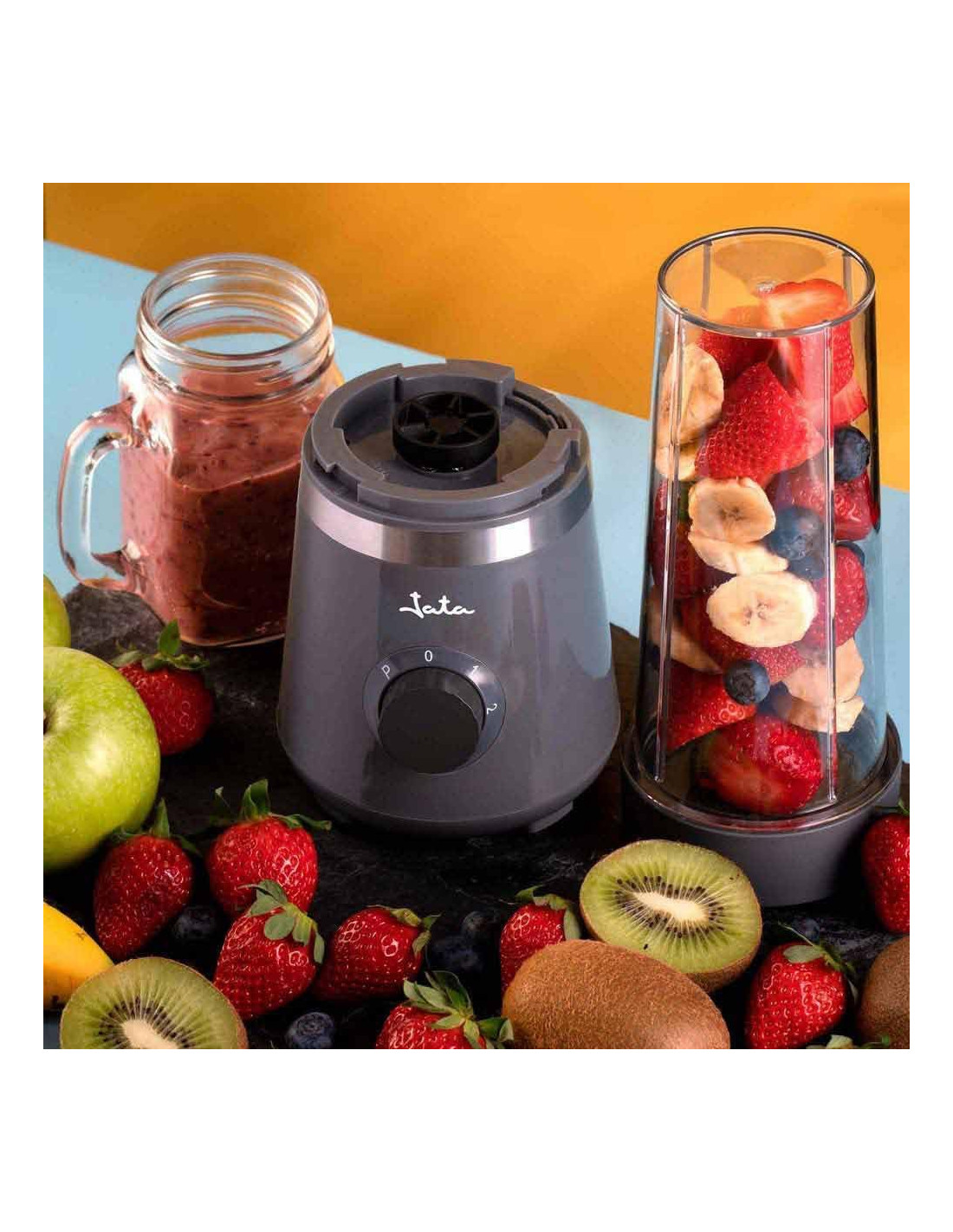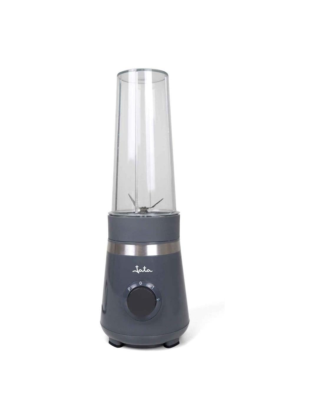 Batidora JATA JEBT1001 BATIDORA PERSONAL. Vaso graduado de doble función (vaso/botella) con capacidad 600 ml. Vaso/Botella ligero y portátil.Incluye tapón Sport con asa de transporte y boquilla. Libre de BPASistema de bloqueo de seguridad homologado. 4 cuchillas extraíbles de acero inoxidable de fácil limpieza, para una mezcla homogénea. Selector de dos velocidades + Pulse. Perfecta para fruta, verduras y hielo.Apta para frutos secos. Base antideslizante.Dimensiones 35 x 12,4 cmVoltaje 230 V. Potencia 600 W.