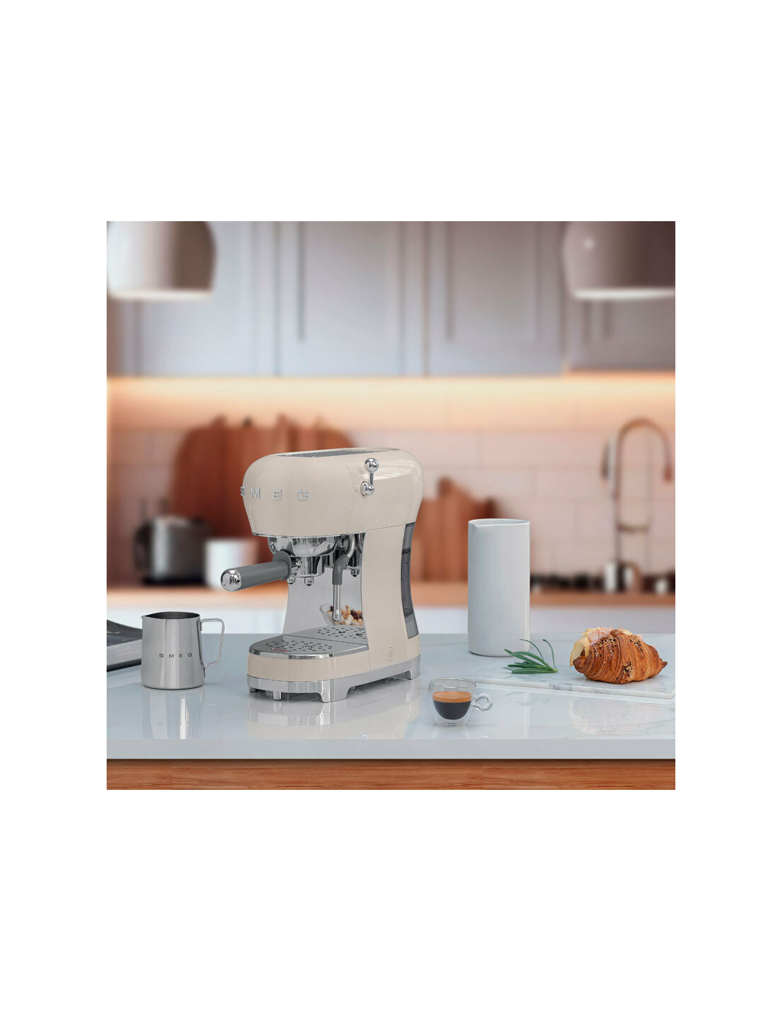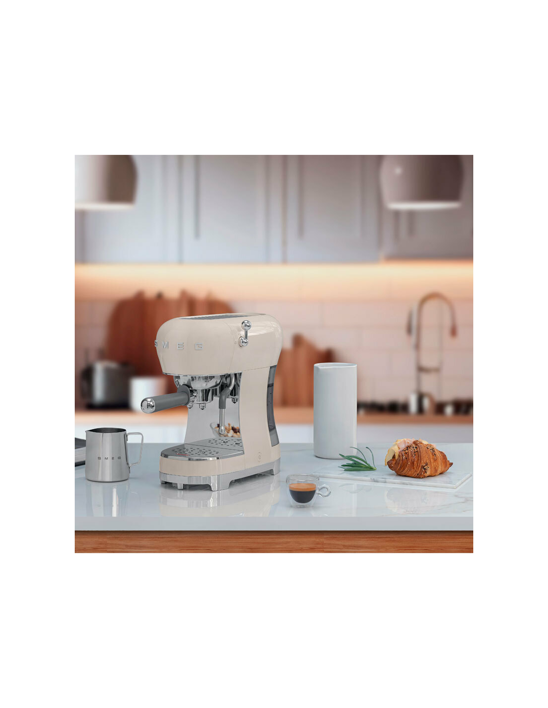 Cafetera espresso Smeg Pae ECF02CREU, 50' style, Crema, Sistema de calentamiento Thermoblock, 15 bar presión, 3 filtros y portafiltros, Capacidad depósito agua: 1,1L, Potencia 1350w