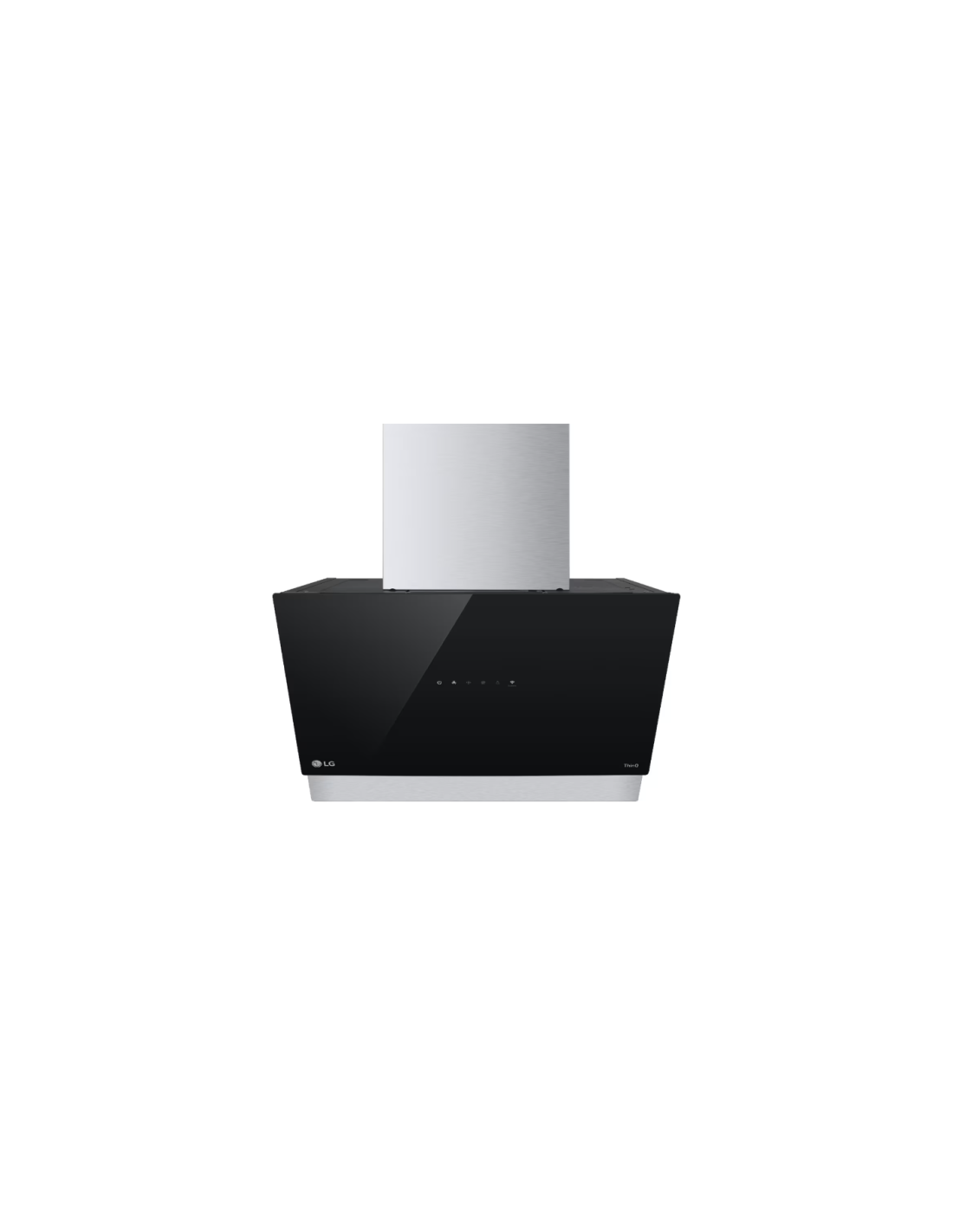 Campana decorativa Lg HCEZ2428B, inclinada, cristal negro-acero, 60cm, Clase energetica "C, Max. Ext. 800 M3, H, 3 niveles de potencia + Booster, Control Independiente Tactil, Display, Luz LED, Conectividad Wifi Conexión Placa – Campana, Filtros lavables en el lavavajillas