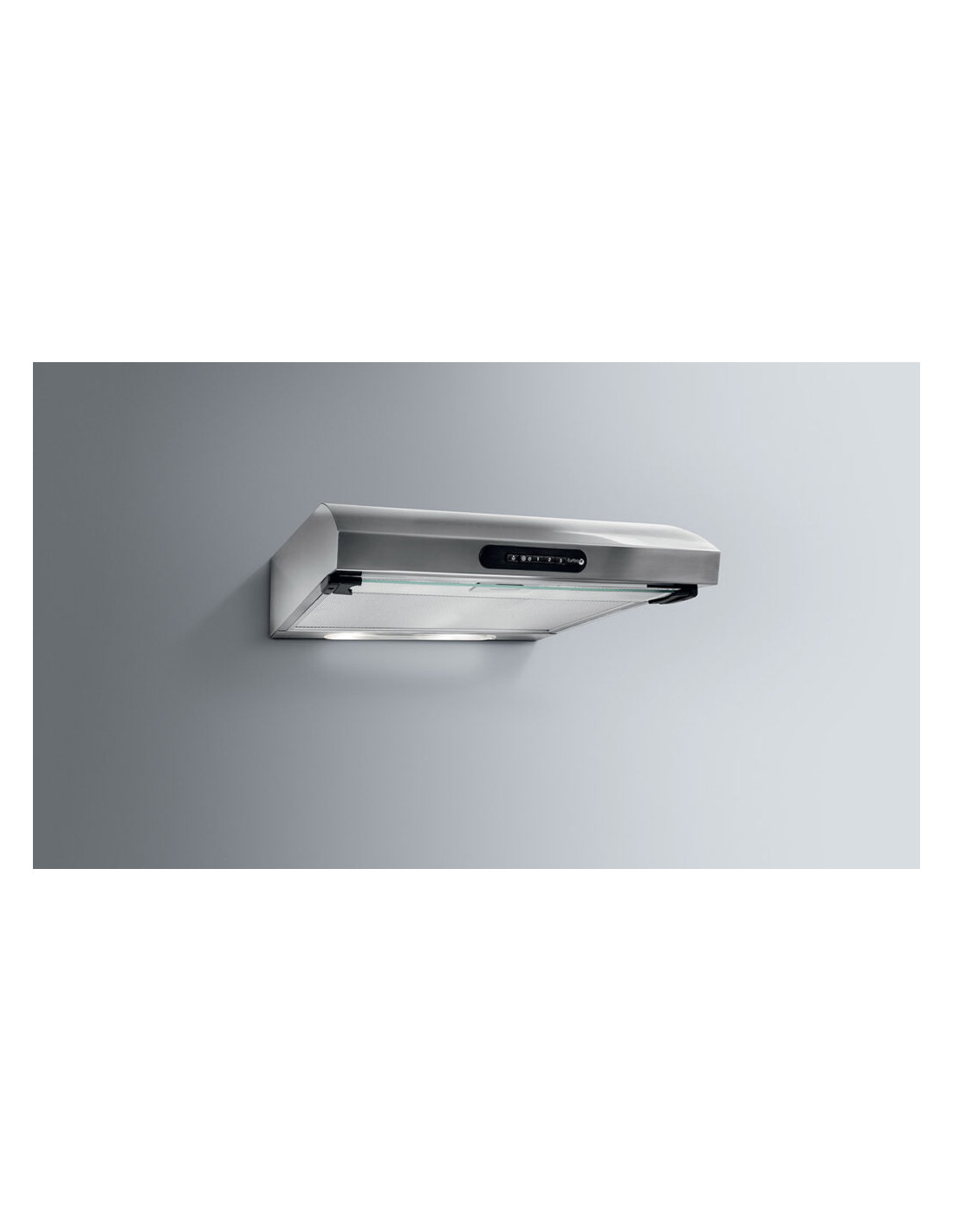 Campana convencional Turboair MORAN LUX BLVT/F/60, negra, 60cm, aspiración 145-185-320 m3/h, 2 lamparas LED, Filtro grasa mejorado y con manutención simplificada, pulsador mecanico con 3 velocidades, con visera, calse energetica "C