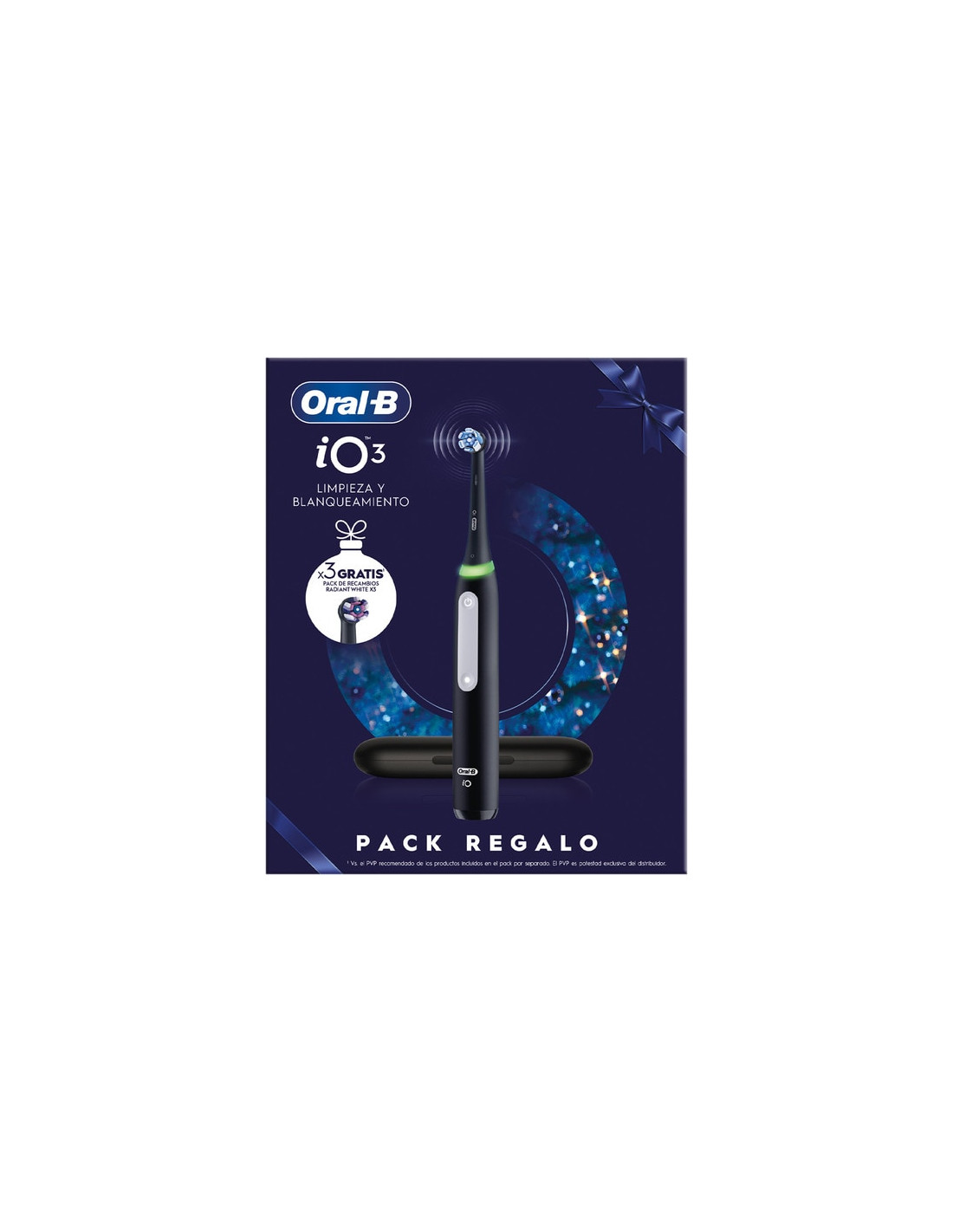 Depillo dental Braun Oral-B Cepillo Eléctrico iO3 Negro con funda de viaje + 3 recambios (203814)