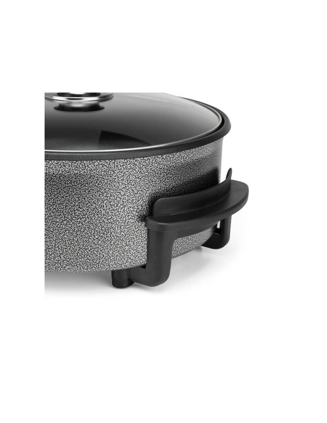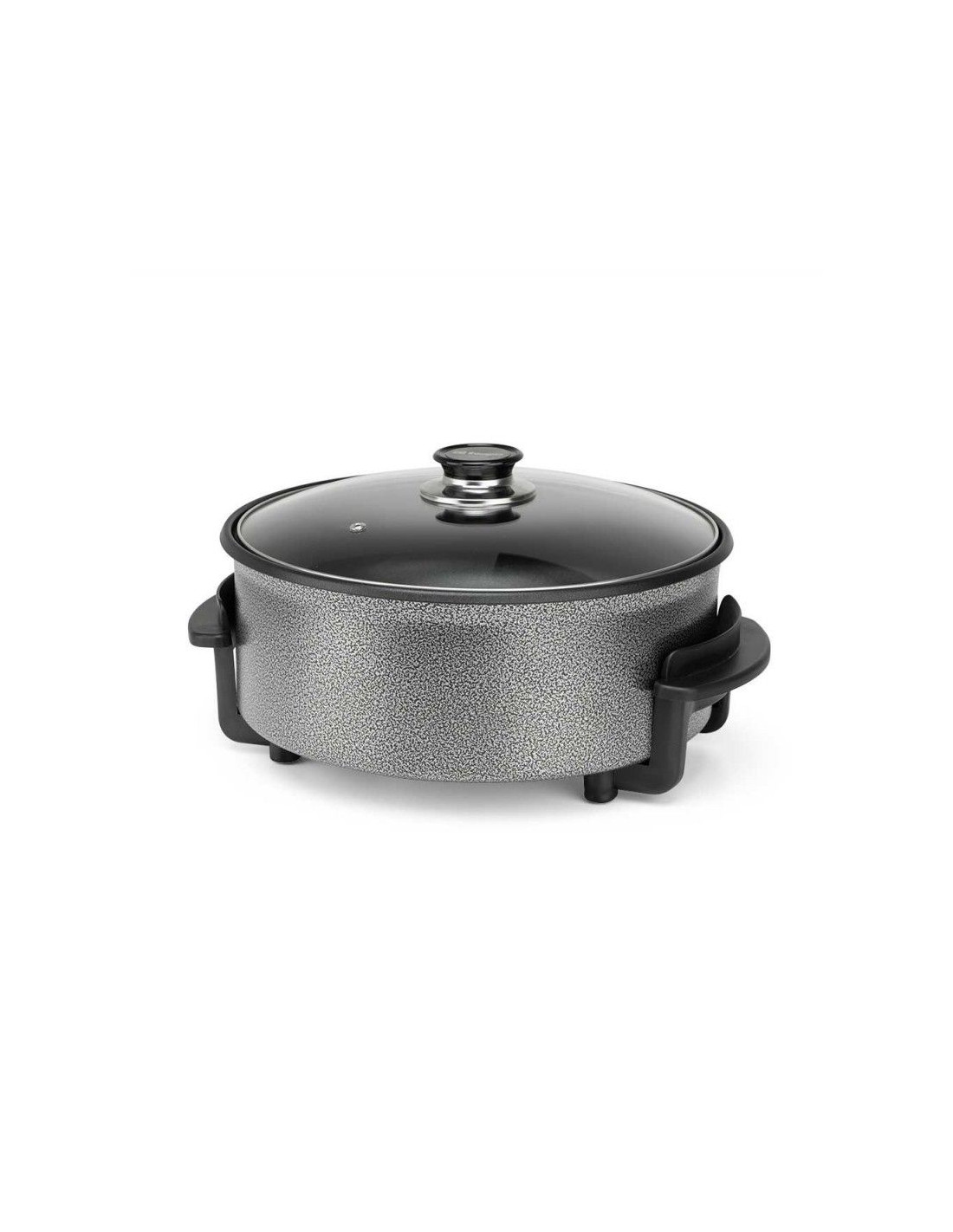 Paellera-sarten electrica Orbegozo PZ3090, Superficie con revestimiento antiadherente. Gran capacidad: 5 l. 30 cm de diámetro y 9 cm de alto. Tapa de cristal con asa y válvula de seguridad. Termostato con temperatura regulable y desmontable para fácil limpieza. Potencia 1.500 W. 220-240 V.