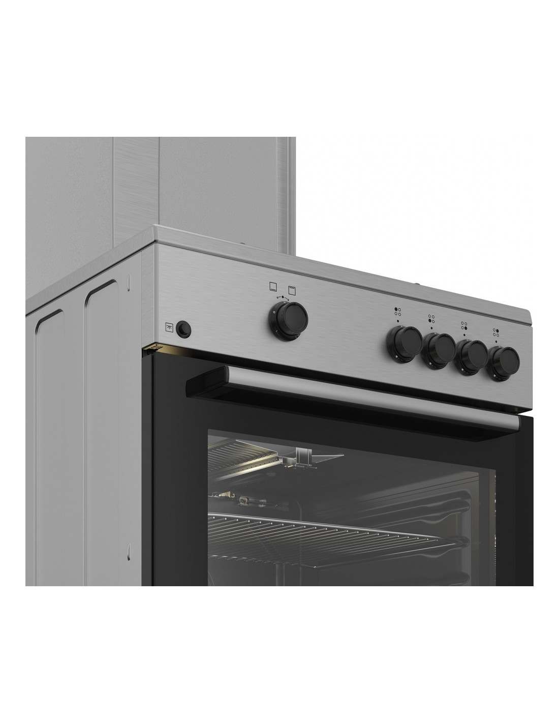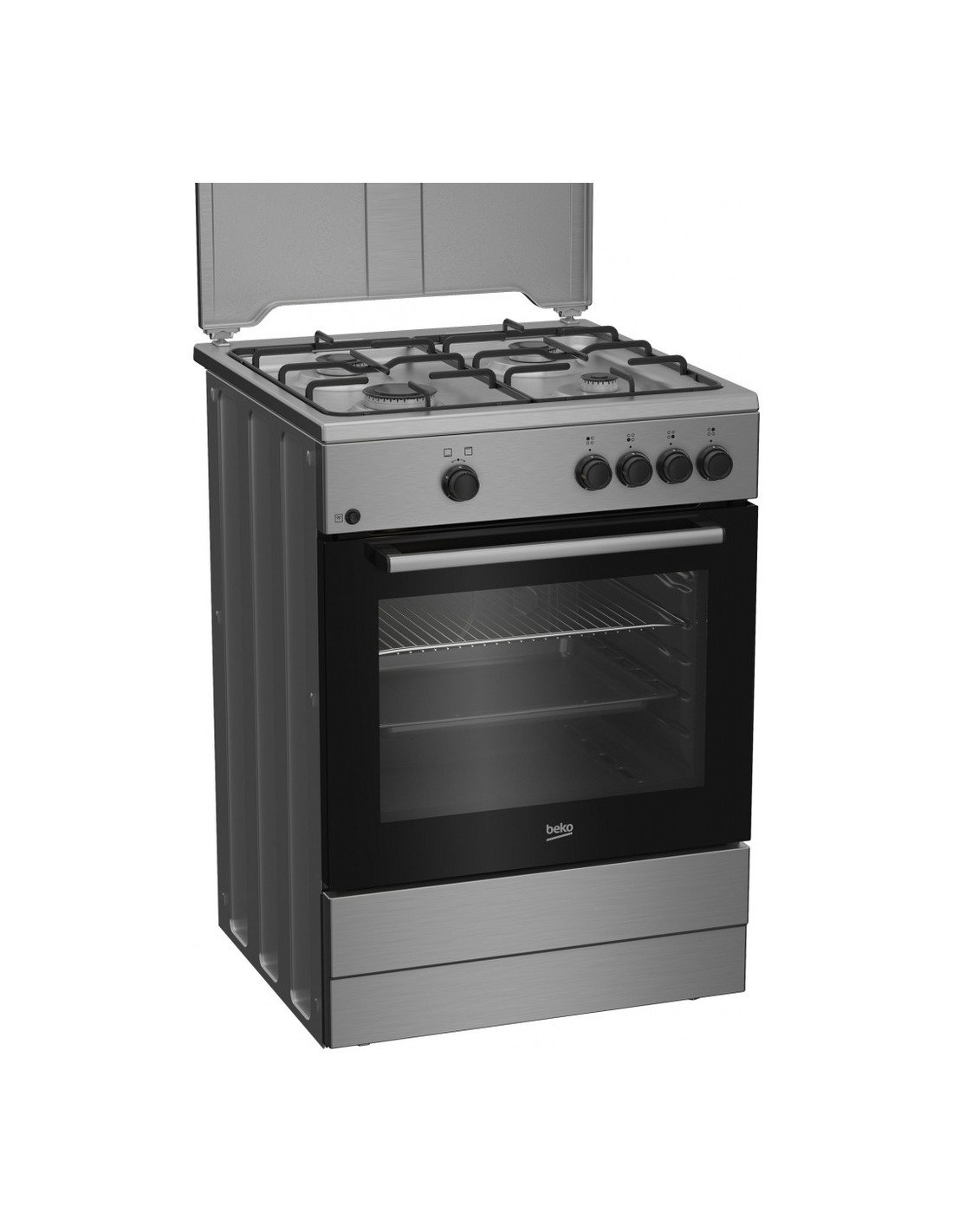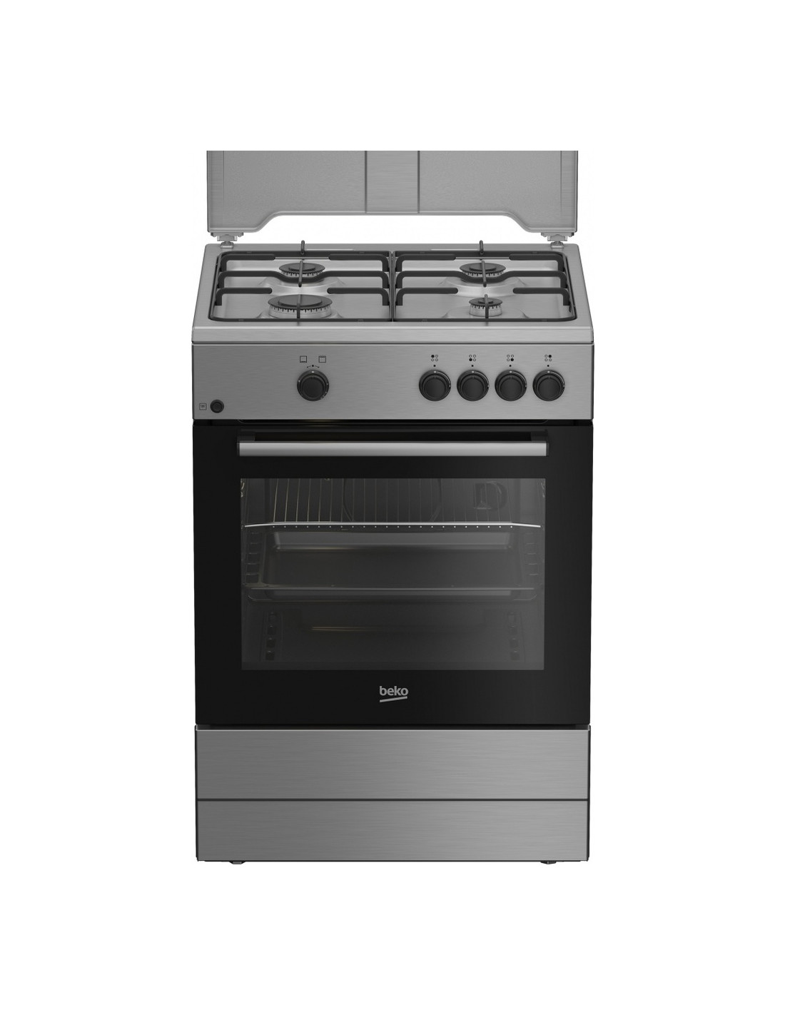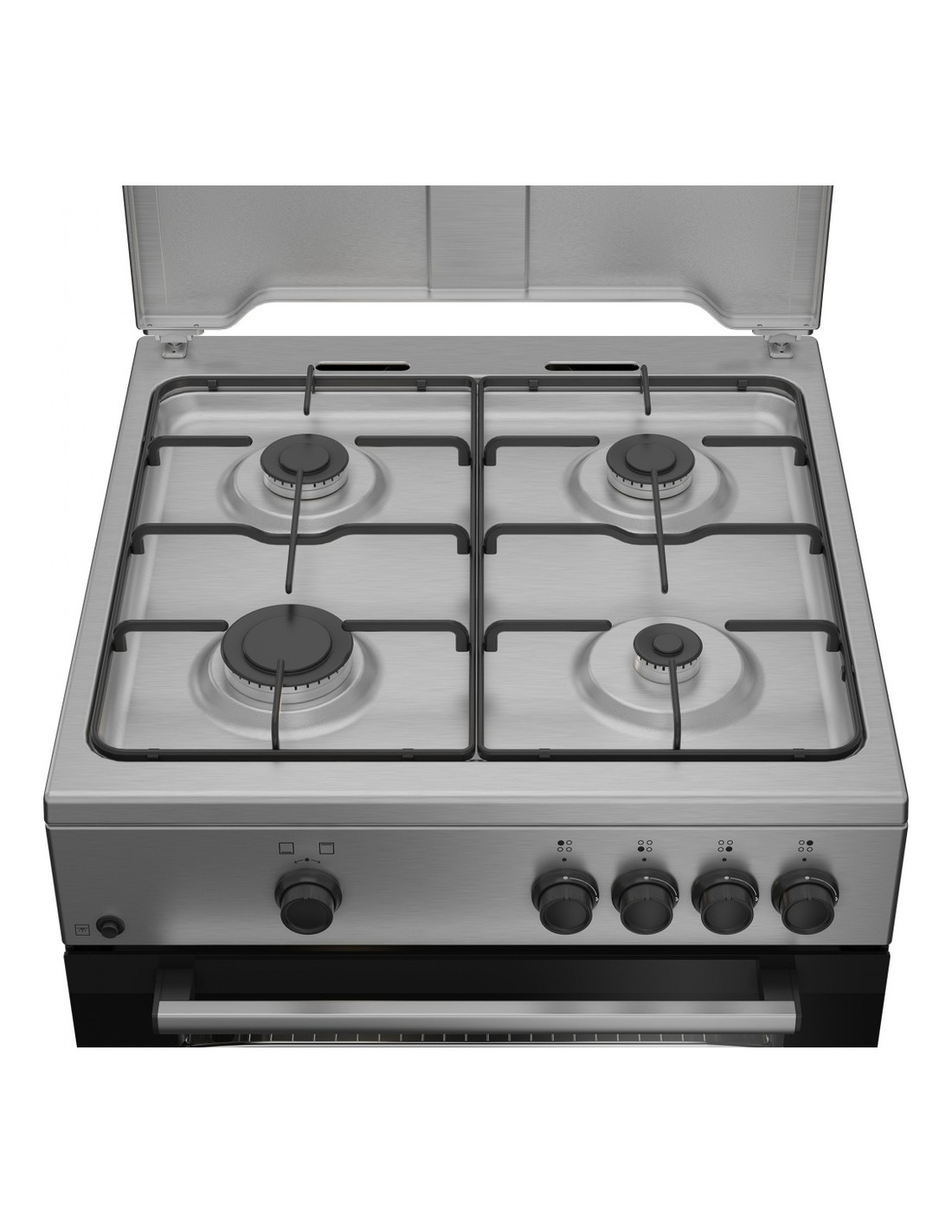 Cocina conv. Beko FBG62000L, 60cm, 4 fuegos, Soportes esmaltados, Horno Gas 2 válvulas con Grill, Gas Butano (Inyectores G.Natural), Inox Antihuella, 60x85x60cm