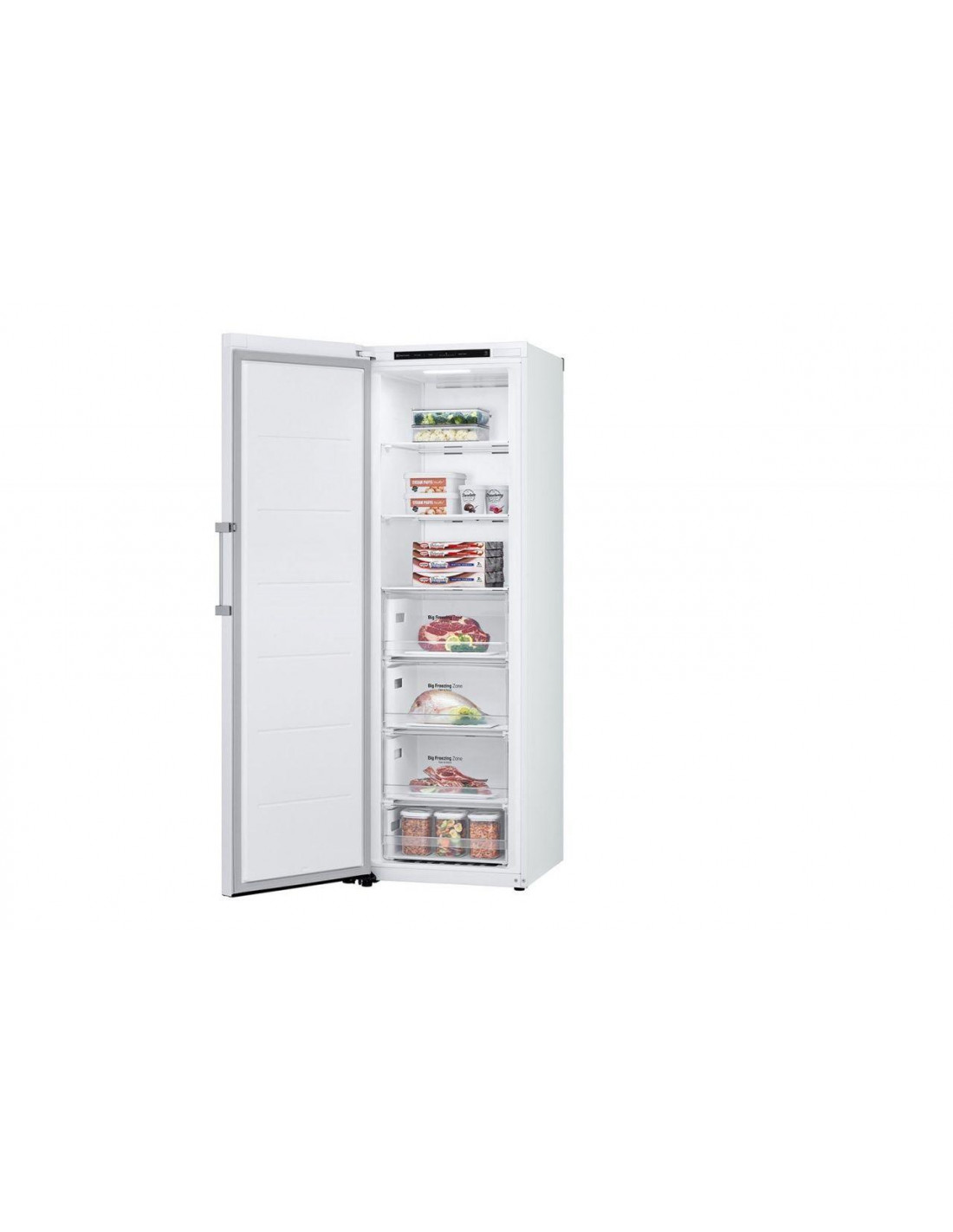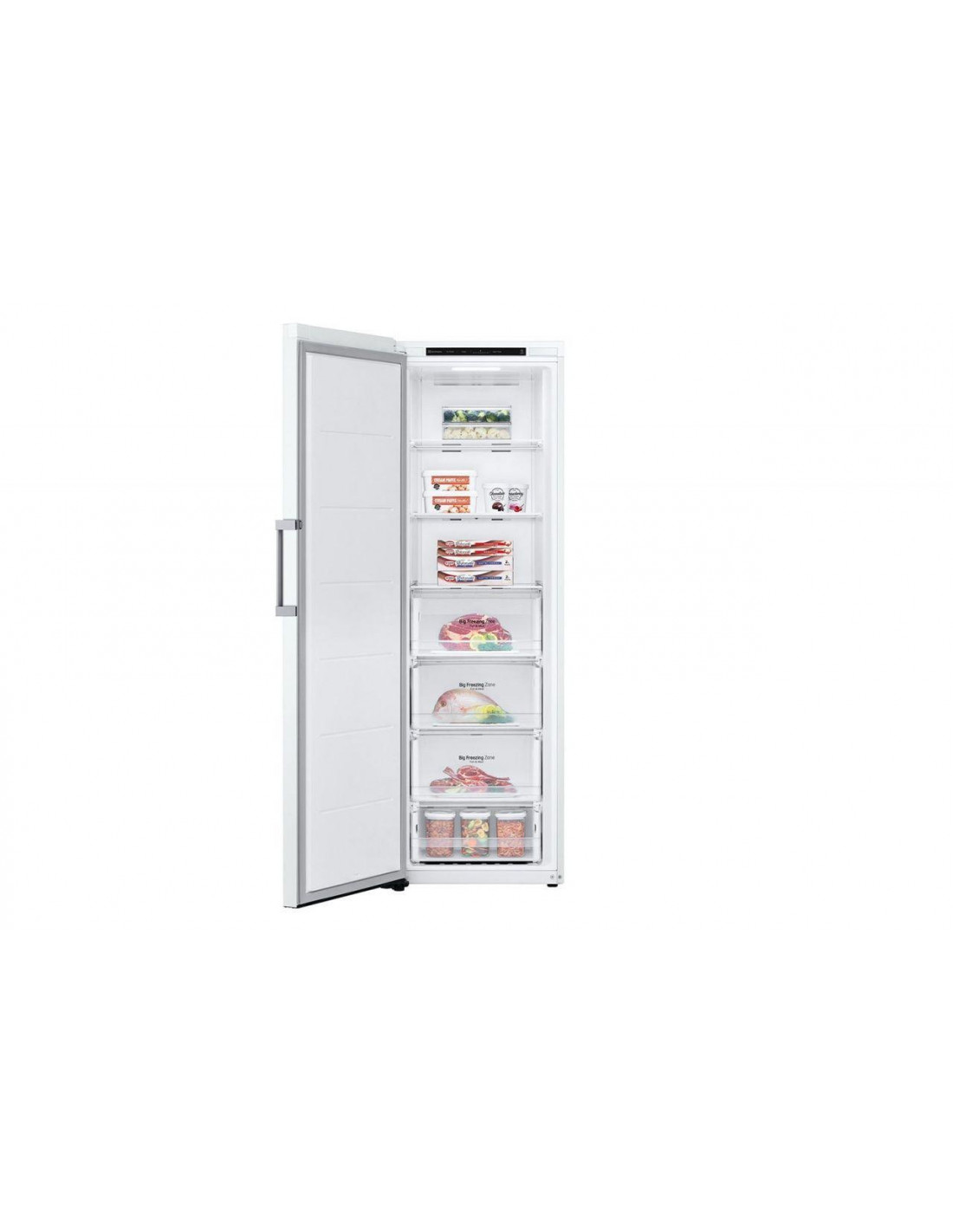 Congelador vertical NF Lg GFT41SWGSZ, Blanco, Clase energetica "E, 186x59,5x70,7cm, 324L, Total No frost, Display Interior, Cajones más amplios Big Zone, Compresor Smart Inverter