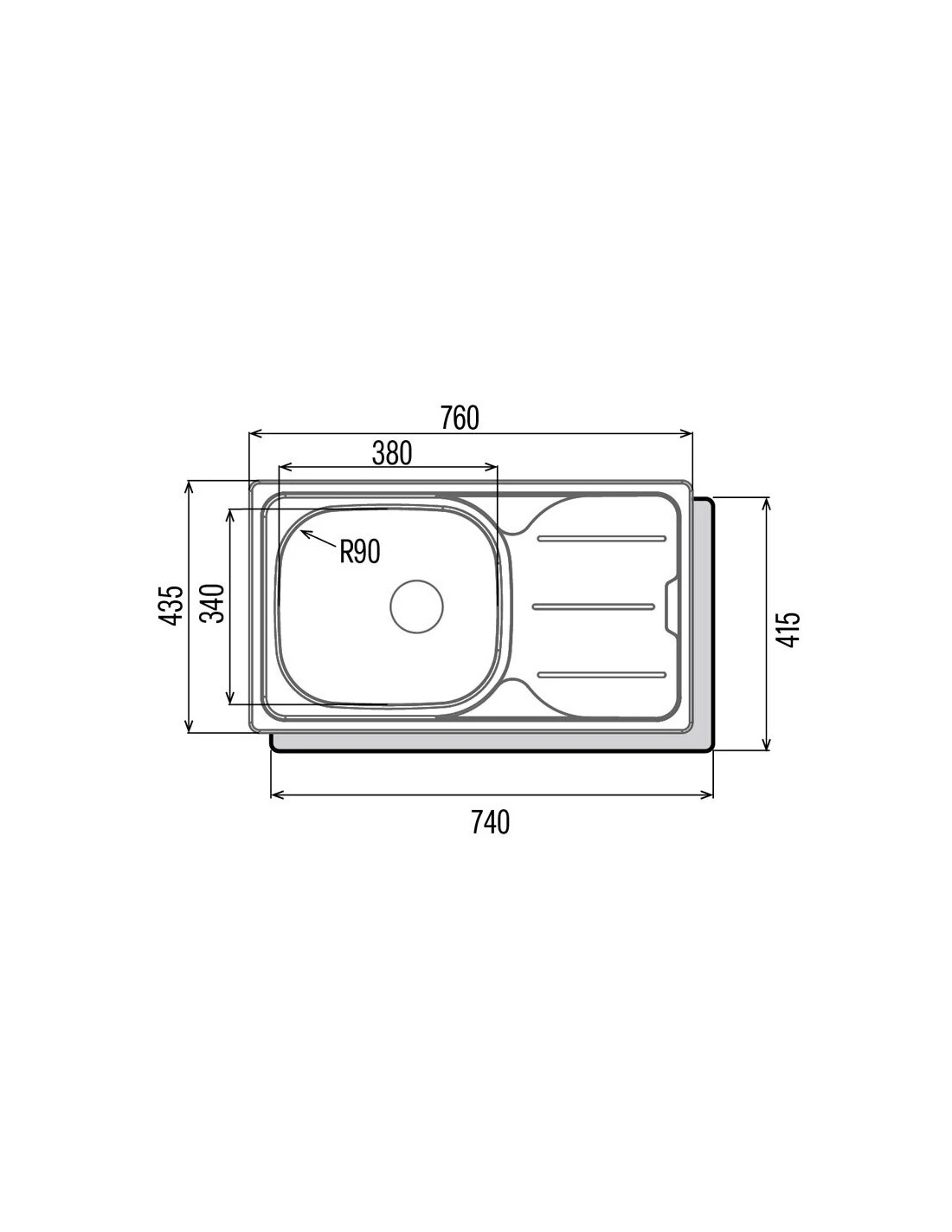 Fregadero inox Cata CDS-1 REV /A, reversible, Cubeta cuadrada con escurridor reversible, Instalación en mueble de 45cm, Dimensiones: 76 x 43,5 cm, Profundidad de la cubeta 15cm, Base con fondo fono absorbente, Acero inoxidable AISI 304 18, 10, Válvula canasta 3 1, 2”, Grosor 0,5mm, ? Accesorios:, Cinta de estanqueidad, Grapas de fijación, Tubo rebosadero, Sifón,