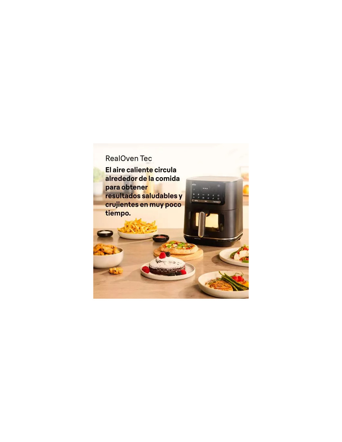 Freidora de aire BRAUN HF5073YBK 2000W, Capacidad 6L, 20 programas de cocción automático, Función airfryer, grill y horno. Tecnología RealOven.