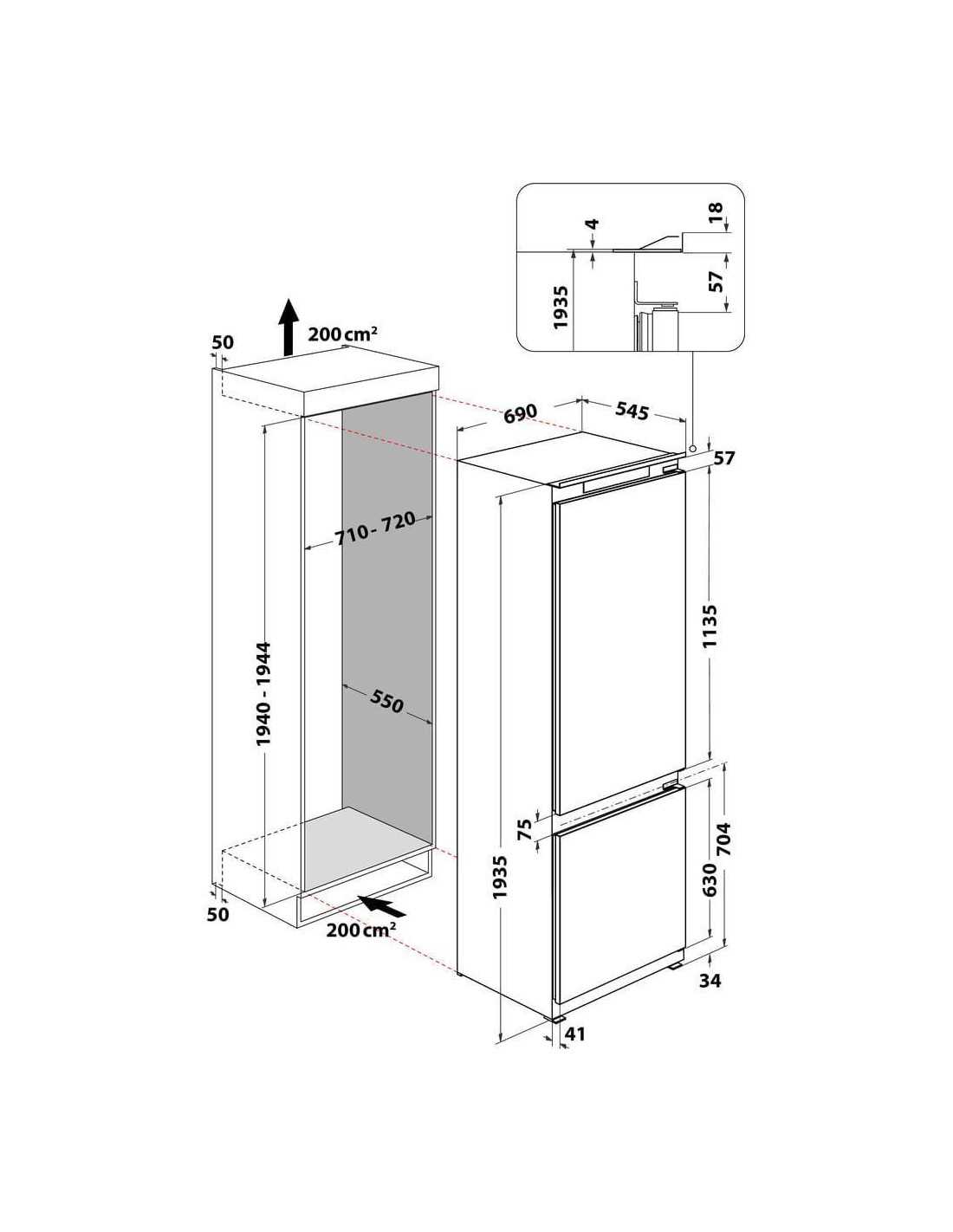 - Altura mínima del hueco: 710