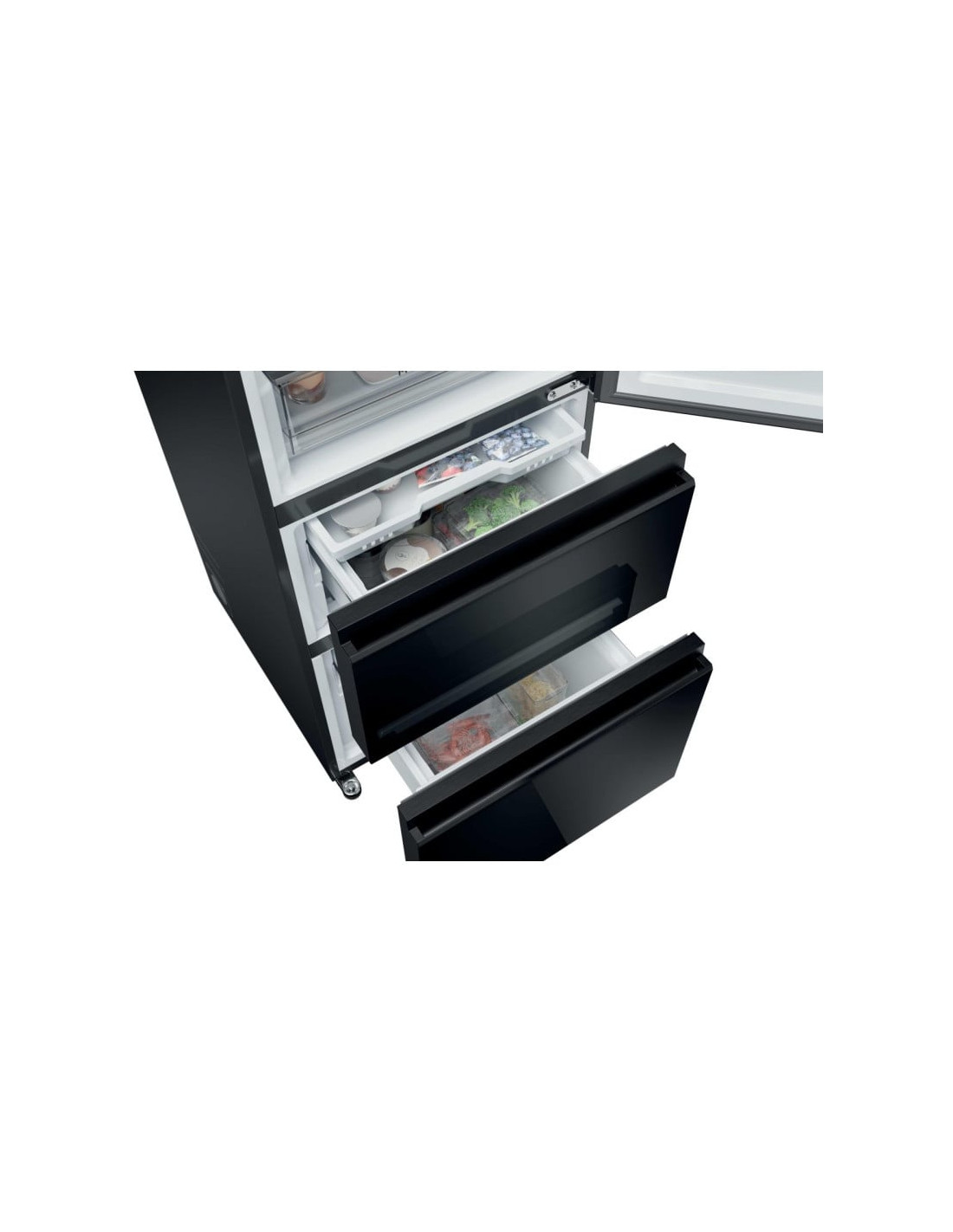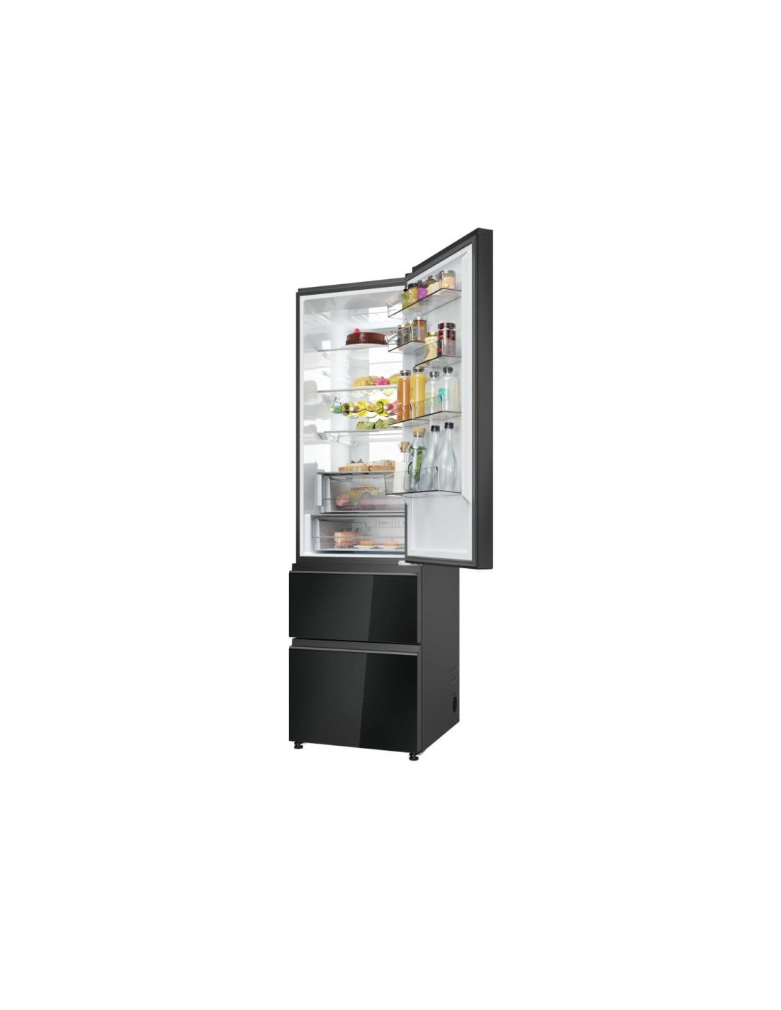 Combi NF Haier HTW7620DNGB, cristal negro, Combi 3D Series 7, 205x59,5x67cm, Clase energetica "D, Cristal Negro, 414L, No Frost, Air Surround, My Zone Pro, Humidity Control System, Cajones Direct Access, Day Light, Antibacterias, Botellero Plegable, WIFI