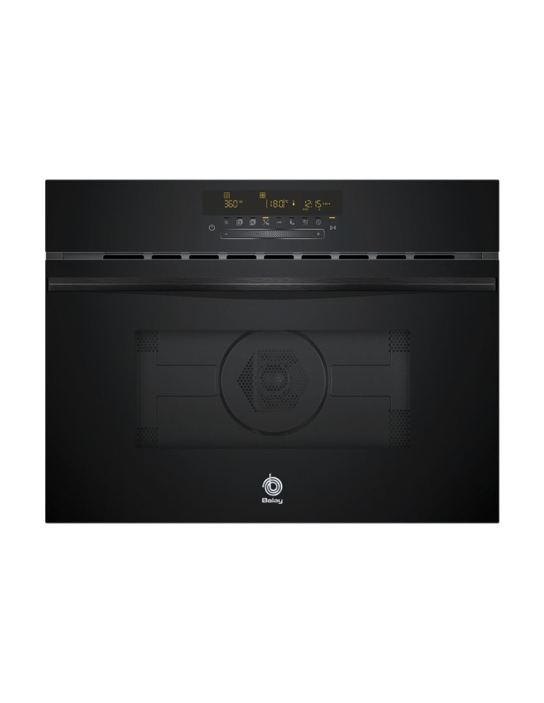 Horno MF compacto+micro Balay 3CW5179N3, negro, Multifunción con microondas, Encastrable, 45cm., 44 l., 5 F., Aqualisis, Ap. Abatible, Cristal Negro, Control táctil Deslizante, 15 recetas, Programación electrónica de paro, sin plato giratorio, con Grill.