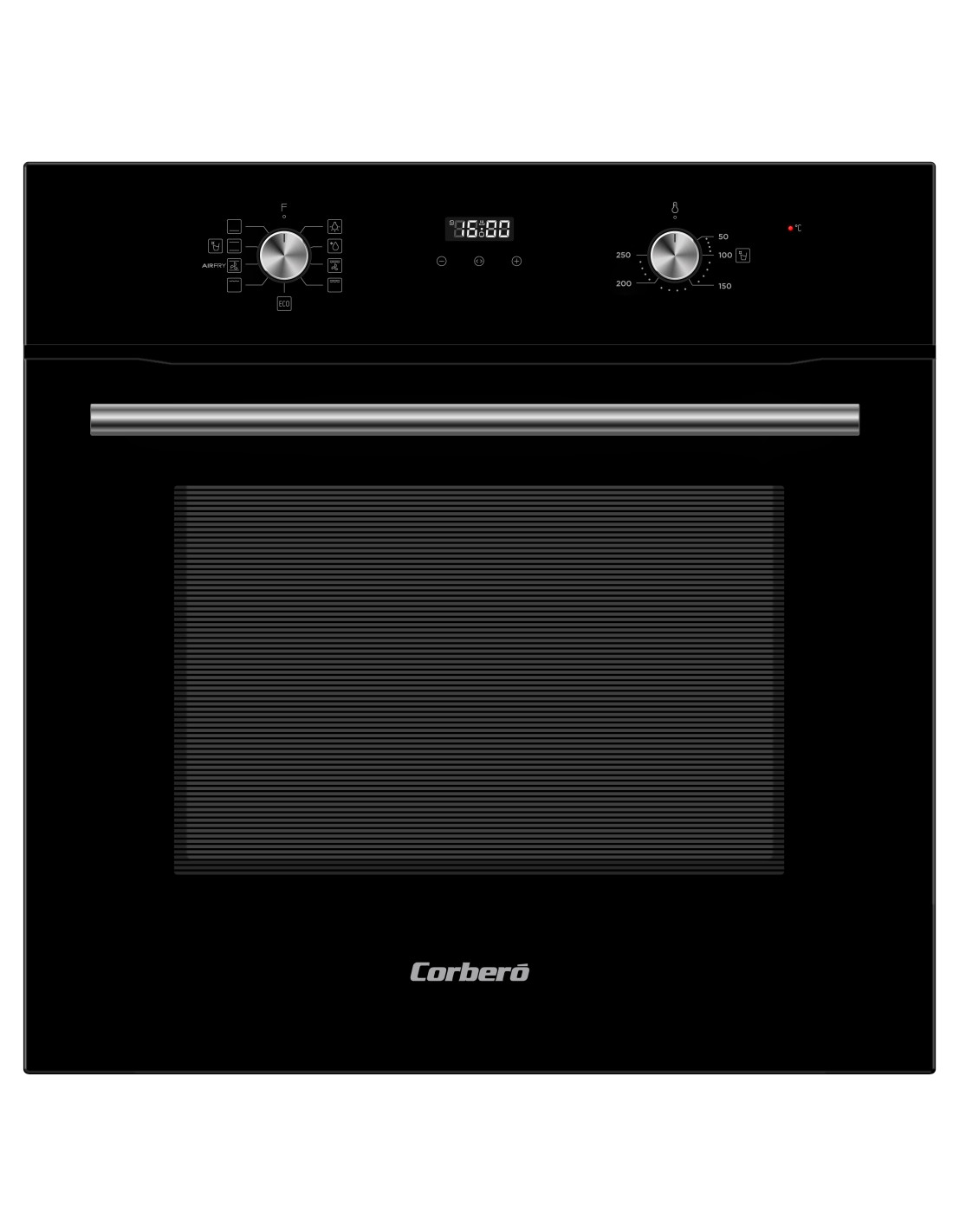 Horno MF indep. Corbero CCHMT905N, 70L, Cristal Negro, Hidrólisis, Multifunción, Display Touch, 8 Prog., Guías Extraíbles, Mandos Push-Pull, Luz Interior, Puerta Doble Cristal, 3000W Potencia, Función Airfry, Eficiencia Energética "A+