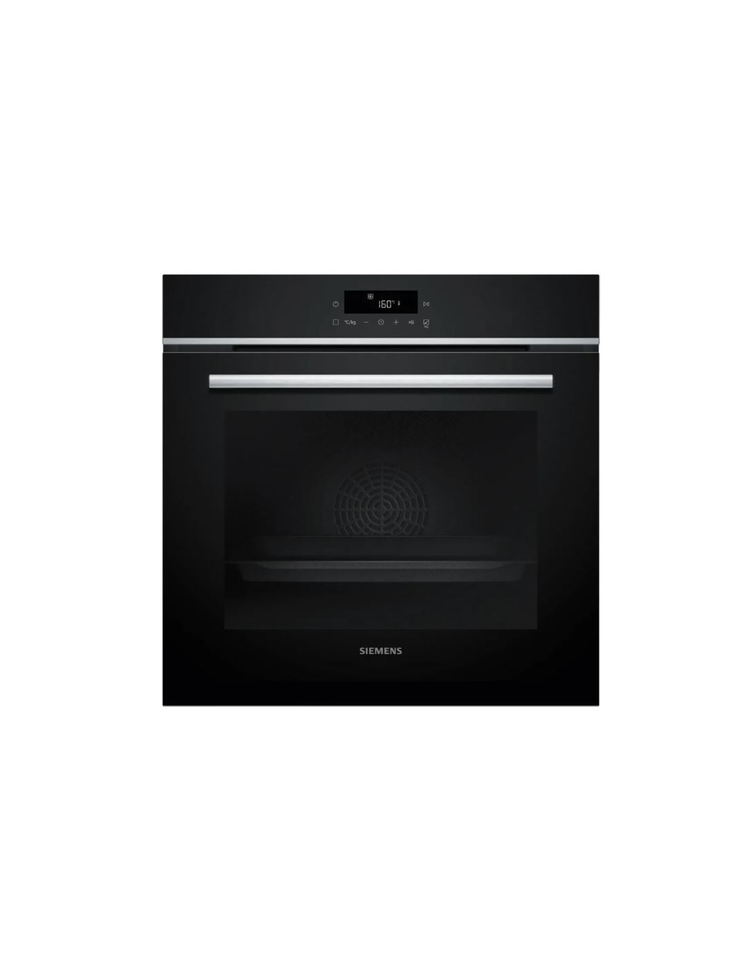 Horno MF pirolitico indep. Siemens HB572AES4, Multifunción, A+, Encastrable, 60cm., 71 l., 7 F., Pirólisis & humidClean, Ap. Abatible, Cristal negro/inox, f. airFry, TouchControl con display, cookcontrol (10 recetas), Raíles 1 nivel