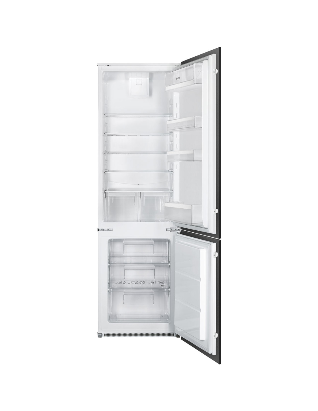 Combi INT Smeg C41721E, integrable, 177,2x54,8x54,9cm, clase energetica "E, Sistema de refrigeración: Ventilado, Puerta reversible: Si, Volumen útil alimentos frescos: 196L, Volumen útil alimentos congelados: 72L, Rumorosidad: 41 dB