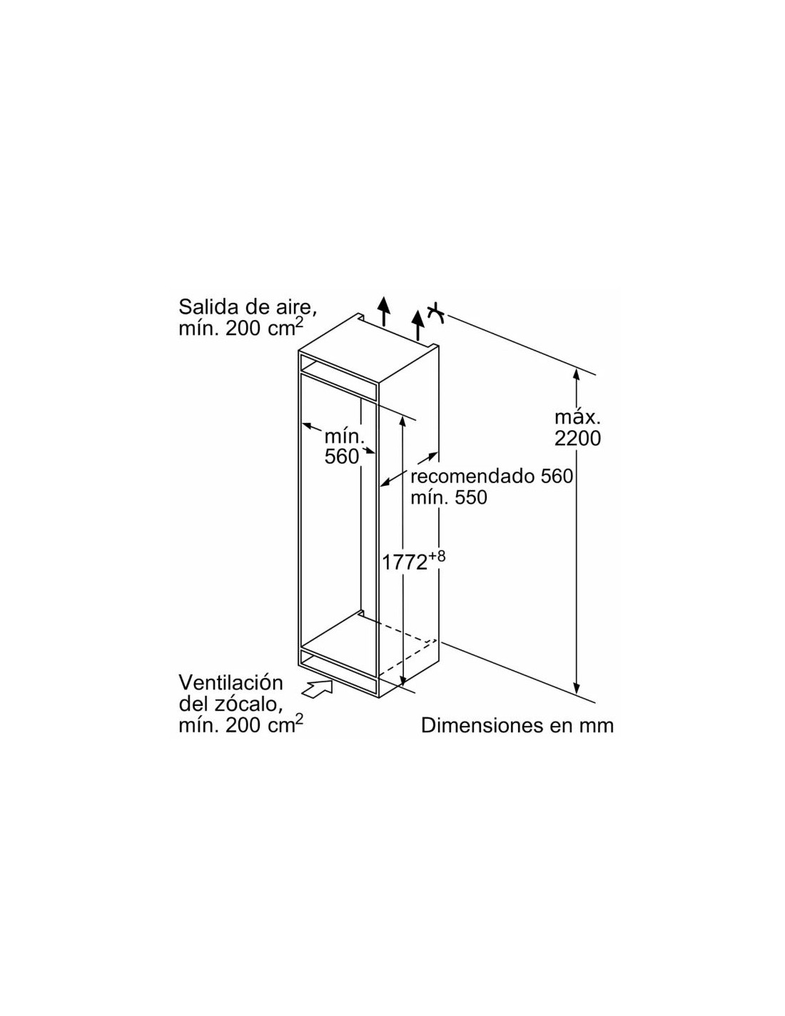 Combi NF INT Bosch KIS86AFE0, Frigorífico combinado cíclico, Clase energetica "E, Integrable, 177x56x55cm., 266 l., VitaFresh Plus. Sistema puerta fija.