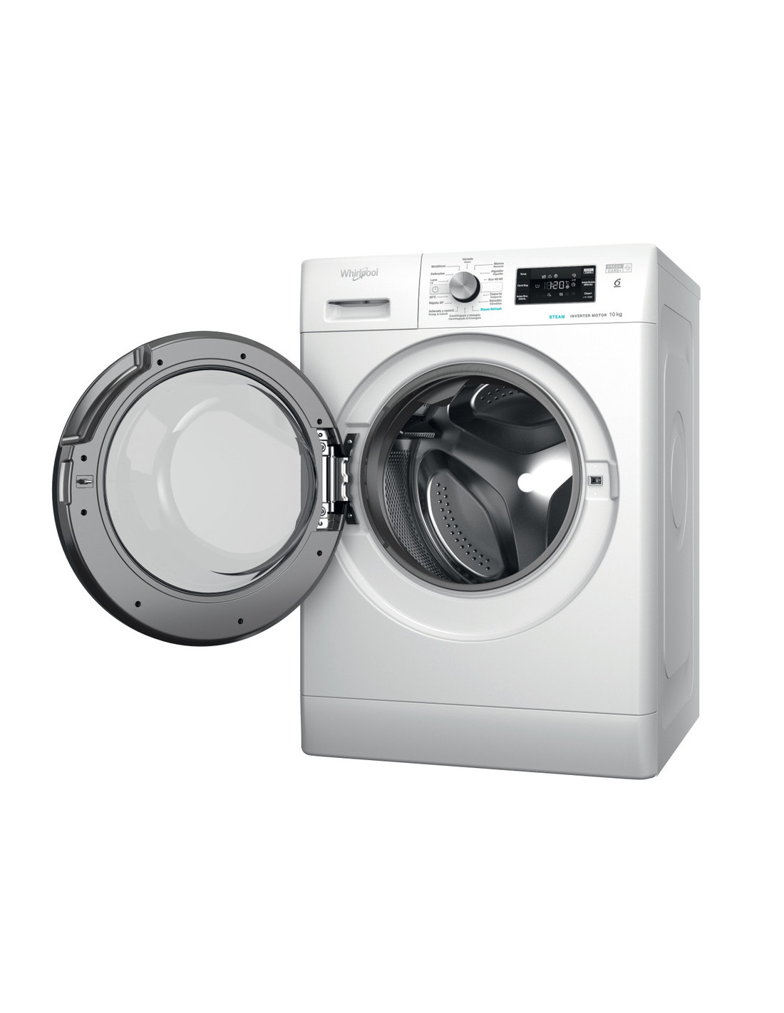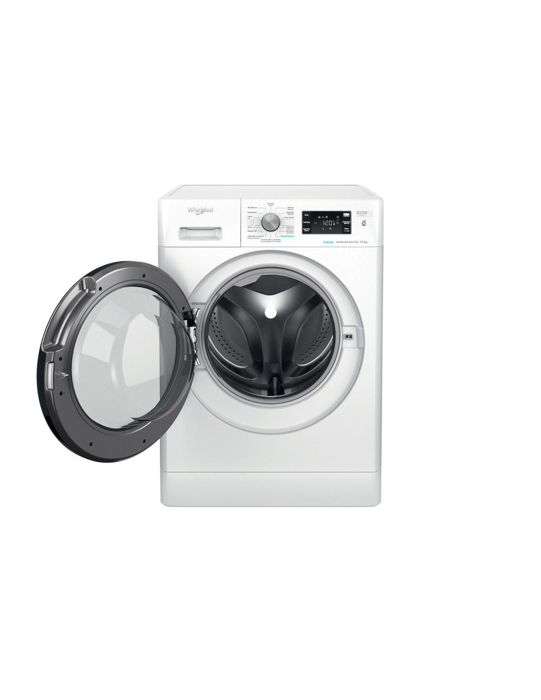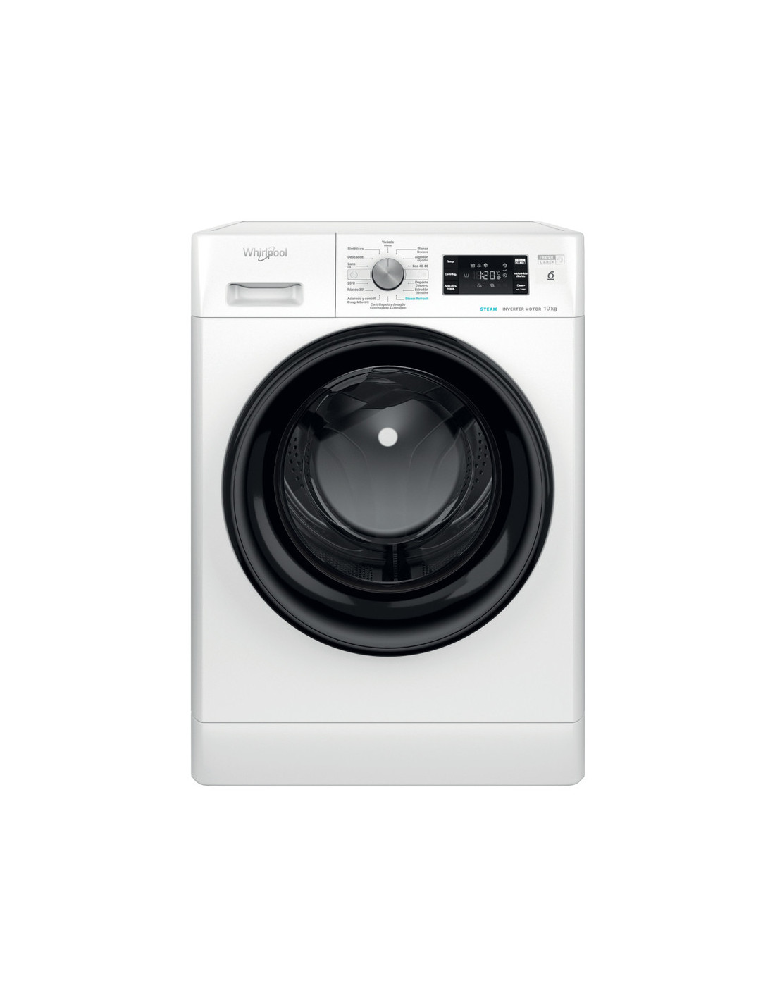 Lavadora Whirlpool FFB10489BVSPT, FRESHCARE, STEAM, 10Kg, 1400rpm, Clase energetica "A-20%, 6th Sense, Display Grande, Motor Inverter (10 años garantía), Rápido 30 , Clean+, 14 Programas, Centrifugado (dBA) 76, 850x595x605 mm PUERTA NEGRA