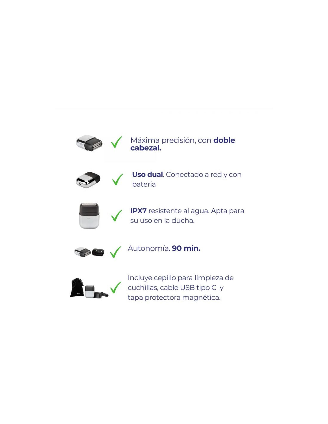 AFEITADORA DE VIAJE JATA JBMA1443, Afeitadora en húmedo y seco para máximo confort. Máxima precisión, con doble cabezal. Pantalla LED