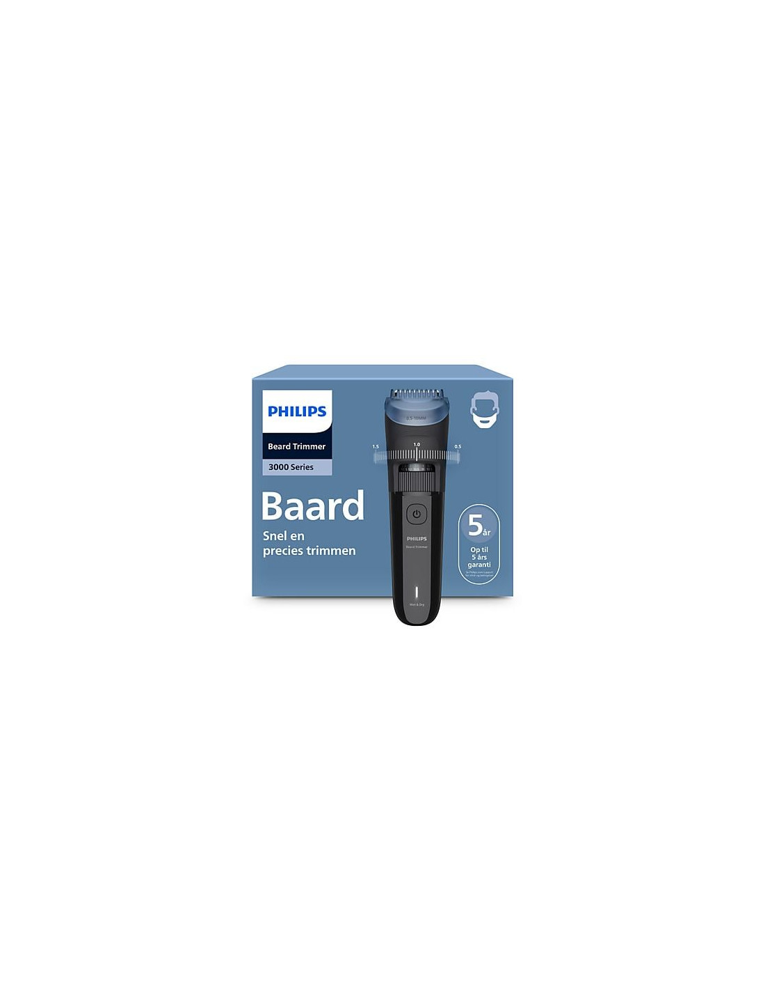 Beard Trimmer 3000 Series Arreglo de barba con cuchillas de punta redondeada, USB-A (no incluye adaptador) Cepillo de limpieza, Carga 4 horas, Tiempo de funcionamiento 70 minutos Tipo de batería: Iones de litio, Estado de la pila: Indicador de carga. Uso: Sin cable