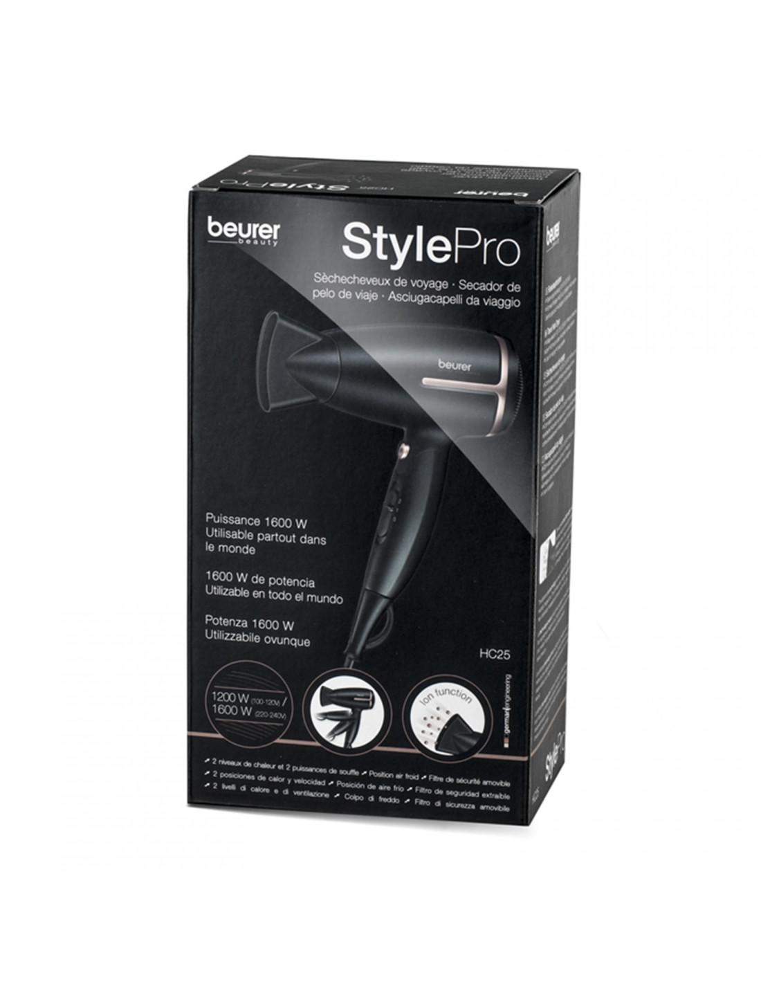 SECADOR BEURER HC25LE24 SECADOR PELO 1600W ; Función iones integrada. ; 2 temperaturas y 2 velocidades. ; Secador plegable.