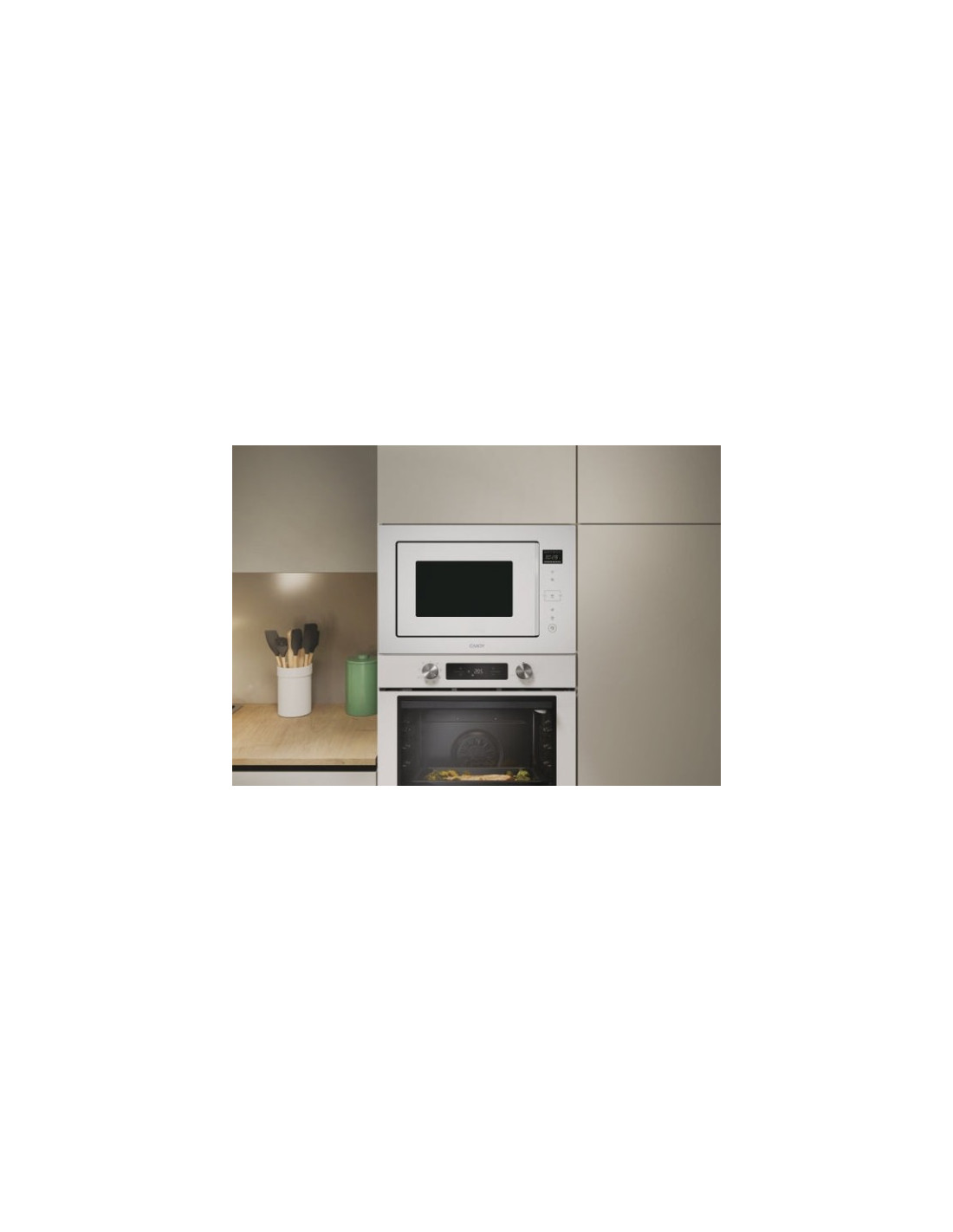 Microondas INT Candy CA38MWN7NW, integrable, blanco, 28L, programas automaticos, programa de descongelacion
