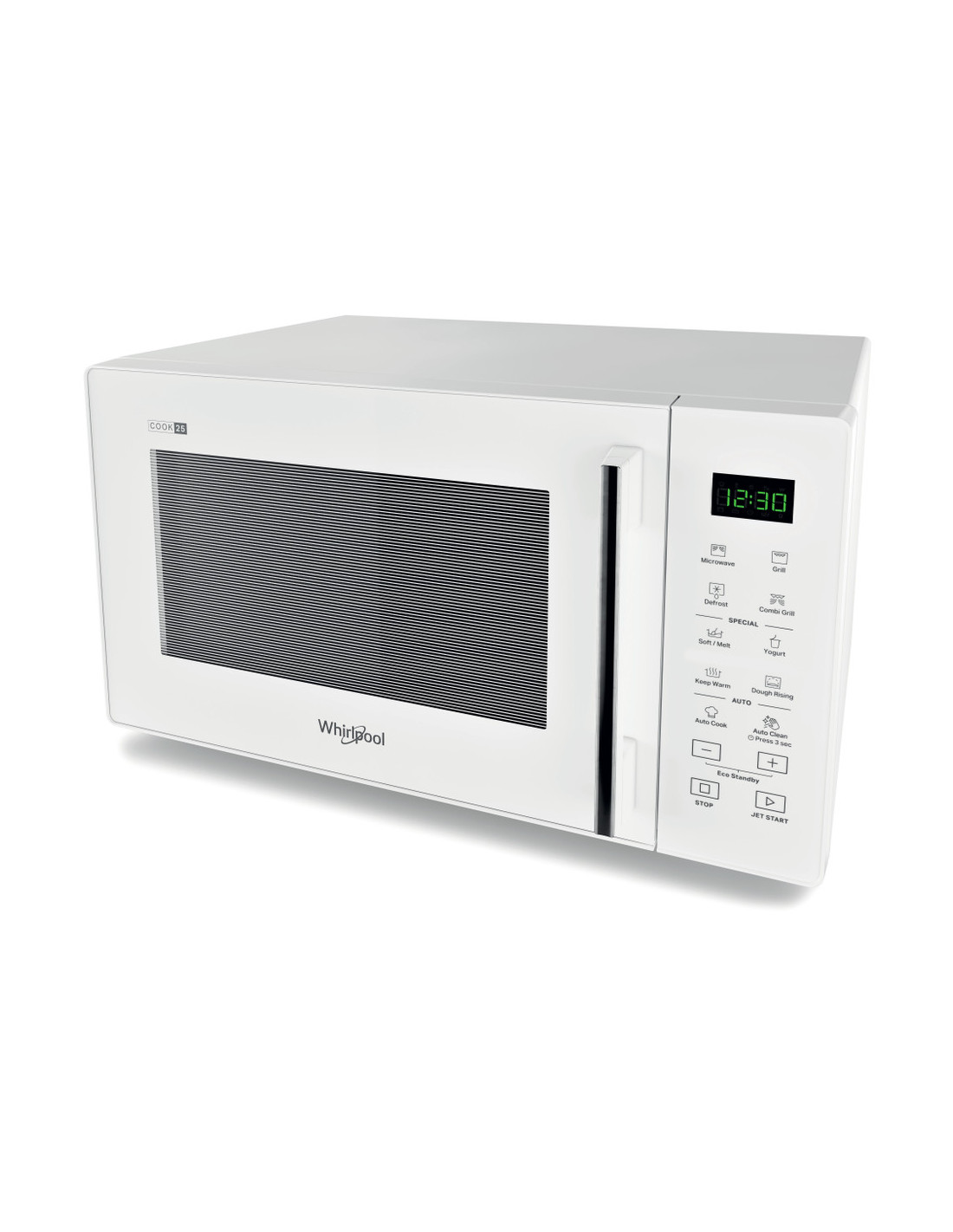 Microondas Whirlpool MWP253W, 25L, COOK 25, MWO/GRILL - 900/1000W, BLANCO, AUTOCOOK, Plato 27 cm, Micro + Grill, Display: LED, 7 niveles de potencia, Sistema de distribuición de olas 2D, Apertura Lateral, Grill de Cuarzo, Jet Start, Mantener Caliente, Temporizador, Bloqueo de seguridad, Potencia Total (W): 1400, Potencia Grill (W): 1000, Cavidad Pintada, 281 x 483 x 419 mm