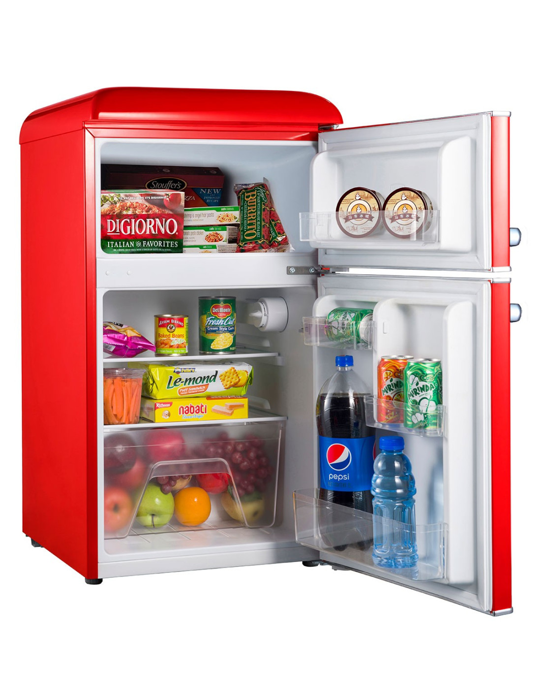 Frigorifico 1puerta Corbero CF2PG90RR, Retro Rojo, 90x55,2x61,7cm, 86L, Color Rojo,LuzLED, Crisper, Descongelación Manual, Estantes de Cristal, Huevera, Cubiteras, 37 Db, Eficiencia Energética "E