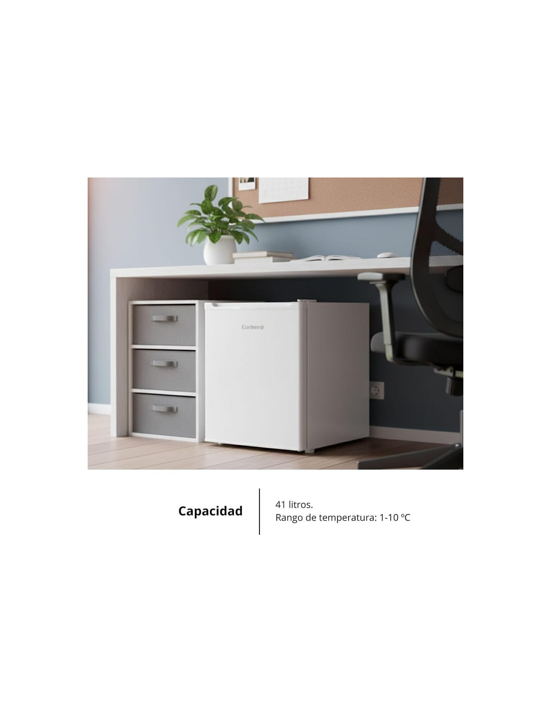 Frigorifico 1puerta Corbero CFHMB41W, Mini Bar, Blanco, 51,5x44x47,5cm, Capacidad 41L, Estático, Blanco, Rango Temperatura 1-10ºC, Rejillas Plasticos, Puertas Reversibles, Patas Niveladoras, 39 Db, Eficiencia Energética "E