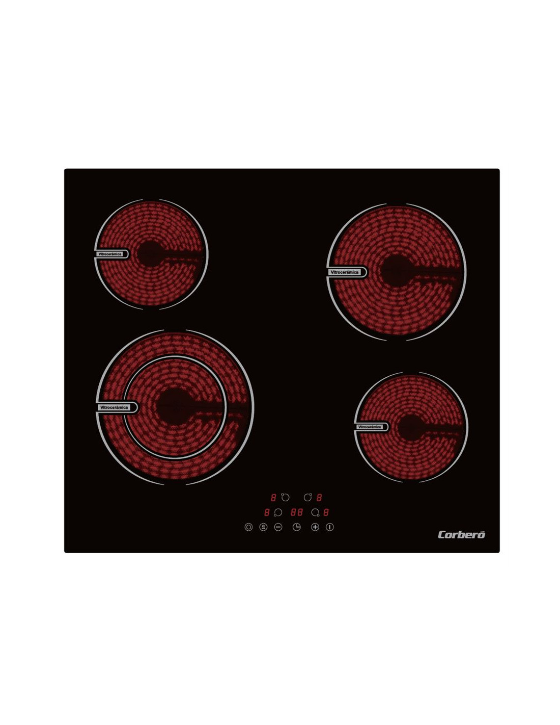 Vitroceramica indep. Corbero CCVG4645, 4 Zonas, Potencia 6400 W, Control Touch Control, Temporizador 99 Minutos, 9 Niveles Potencia, Desconexión Automática de Seguridad, Bloqueo de Seguridad Para Niños