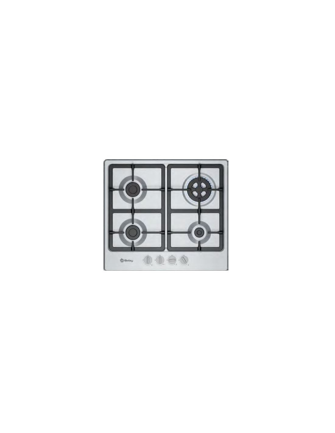 Encimera gas indep. Balay 3ETX565CB, Gas, Encastrable, 60 cm., 4 quemadores, Acero, Wok de 3,3 kW., Gas Stop, parrillas hierro fundido aptas lavavajillas, autoencendido.