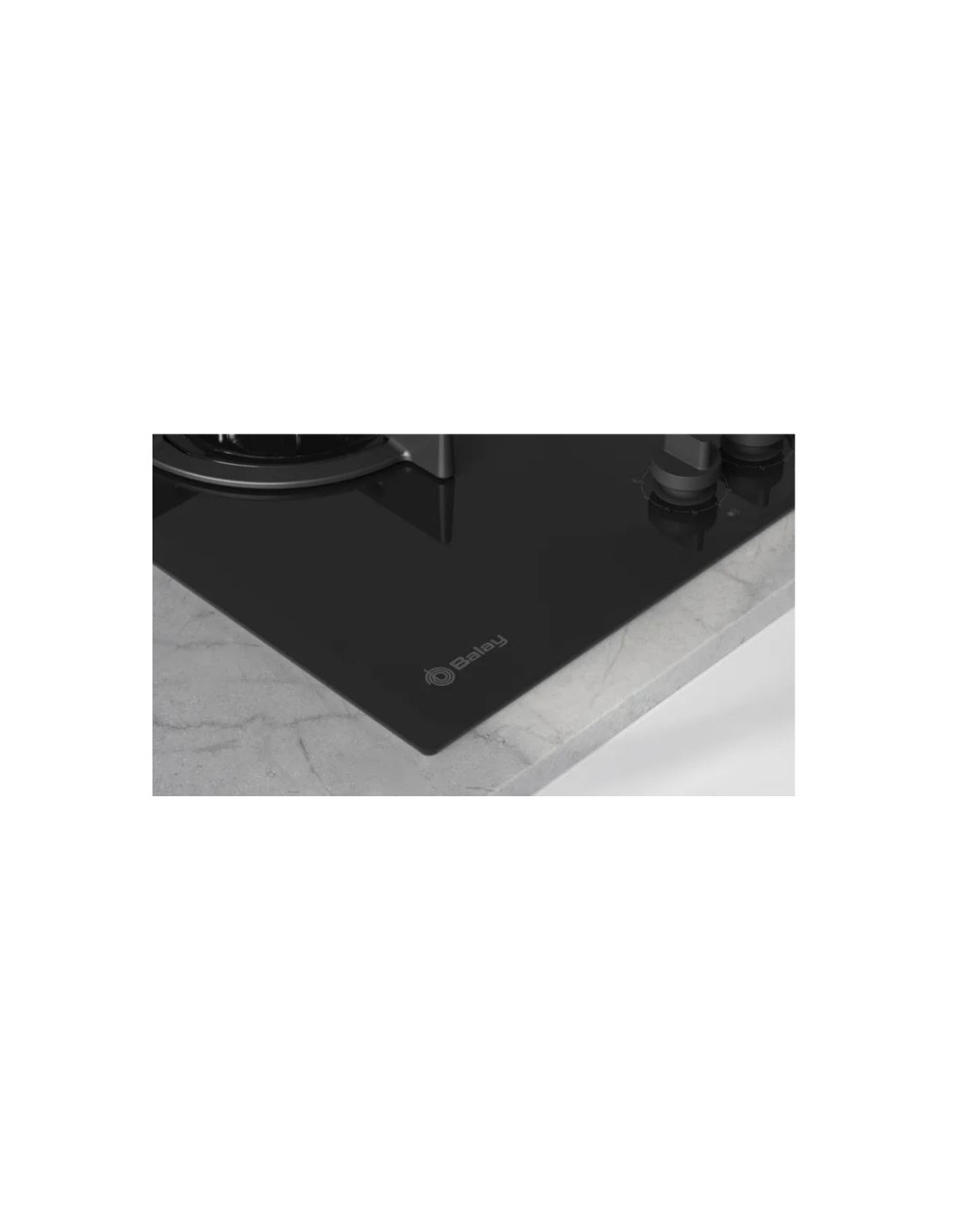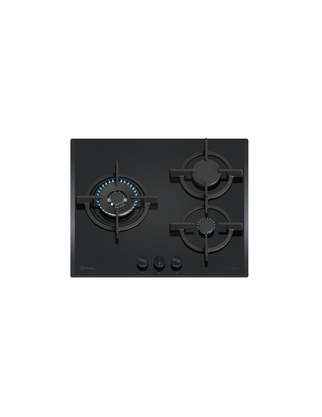 Encimera gas Balay 3ETG663RB, Encimera, Gas, Encastrable, 60 cm., 3 quemadores, Cristal templado negro, Control preciso de llama 9 niveles, wok 4 kW., Gas Stop, parrillas hierro fundido aptas lavavajillas, autoencendido, mandos extraibles, biselada. Butano