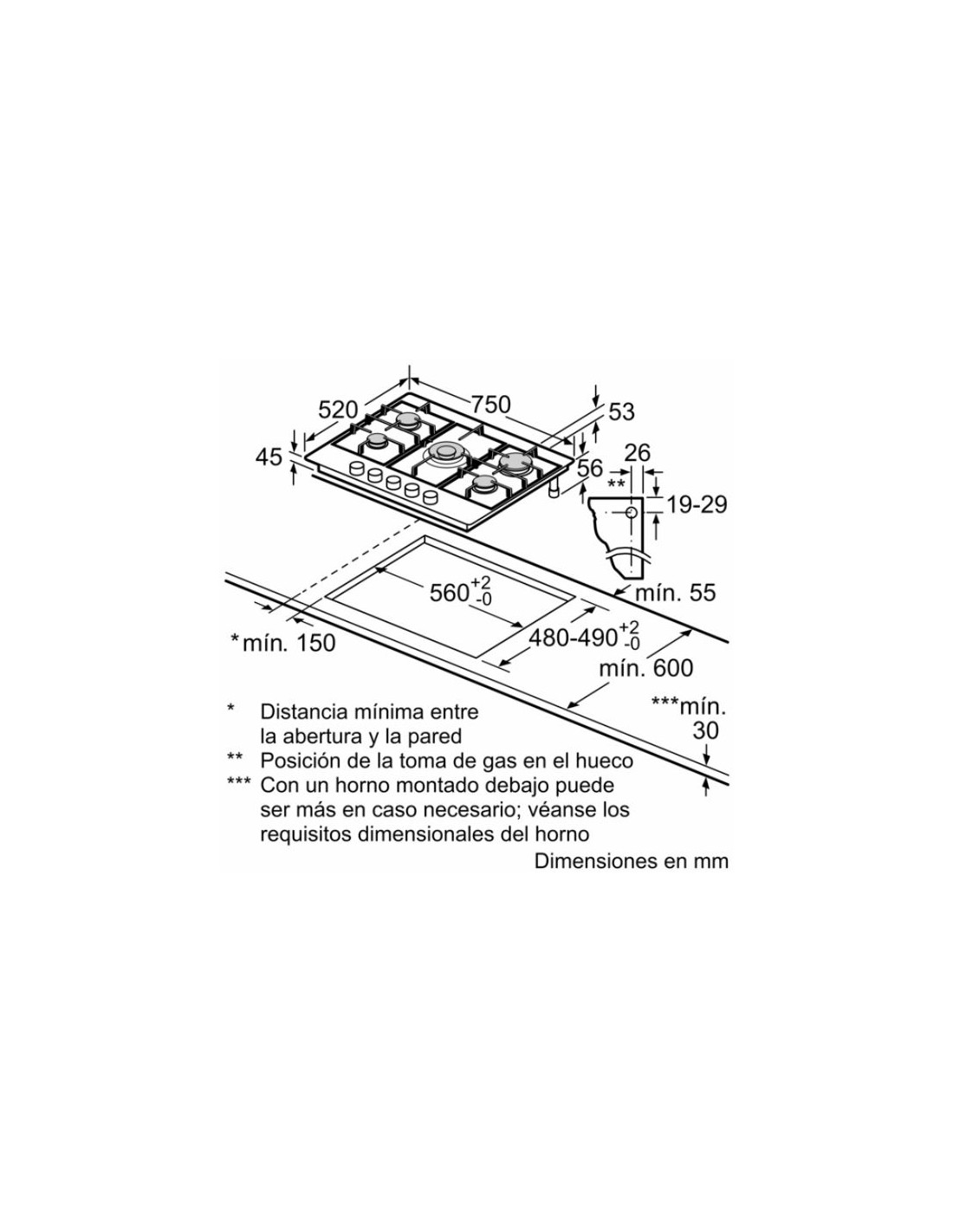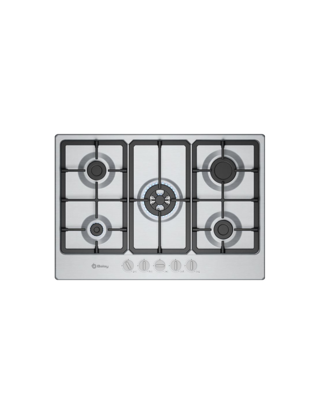 Encimera gas Balay 3ETX576CB, Encimera, Gas, Encastrable, 75 cm., 5 quemadores, Acero, Wok de 3,3 kW., Gas Stop, parrillas hierro fundido aptas lavavajillas, autoencendido.