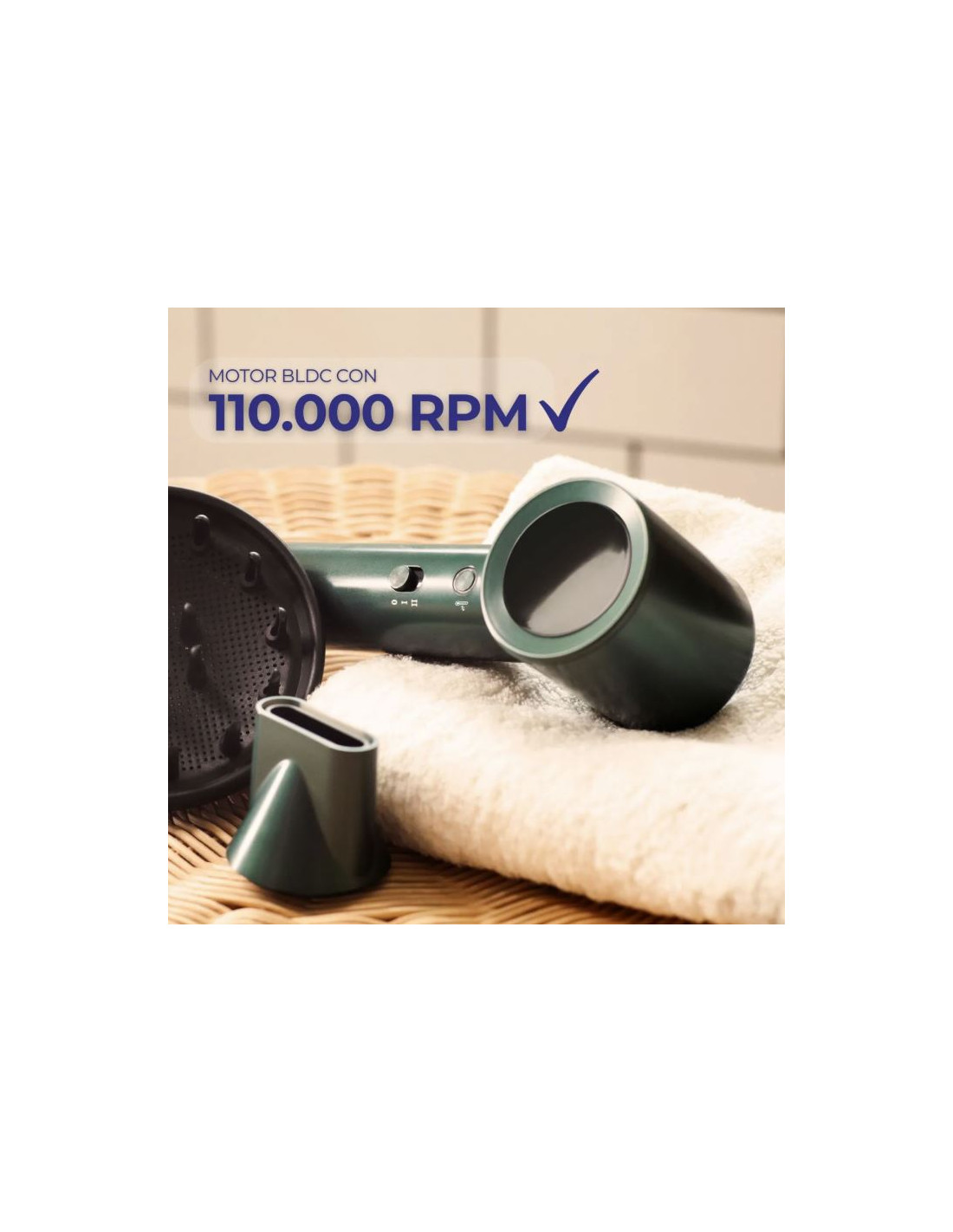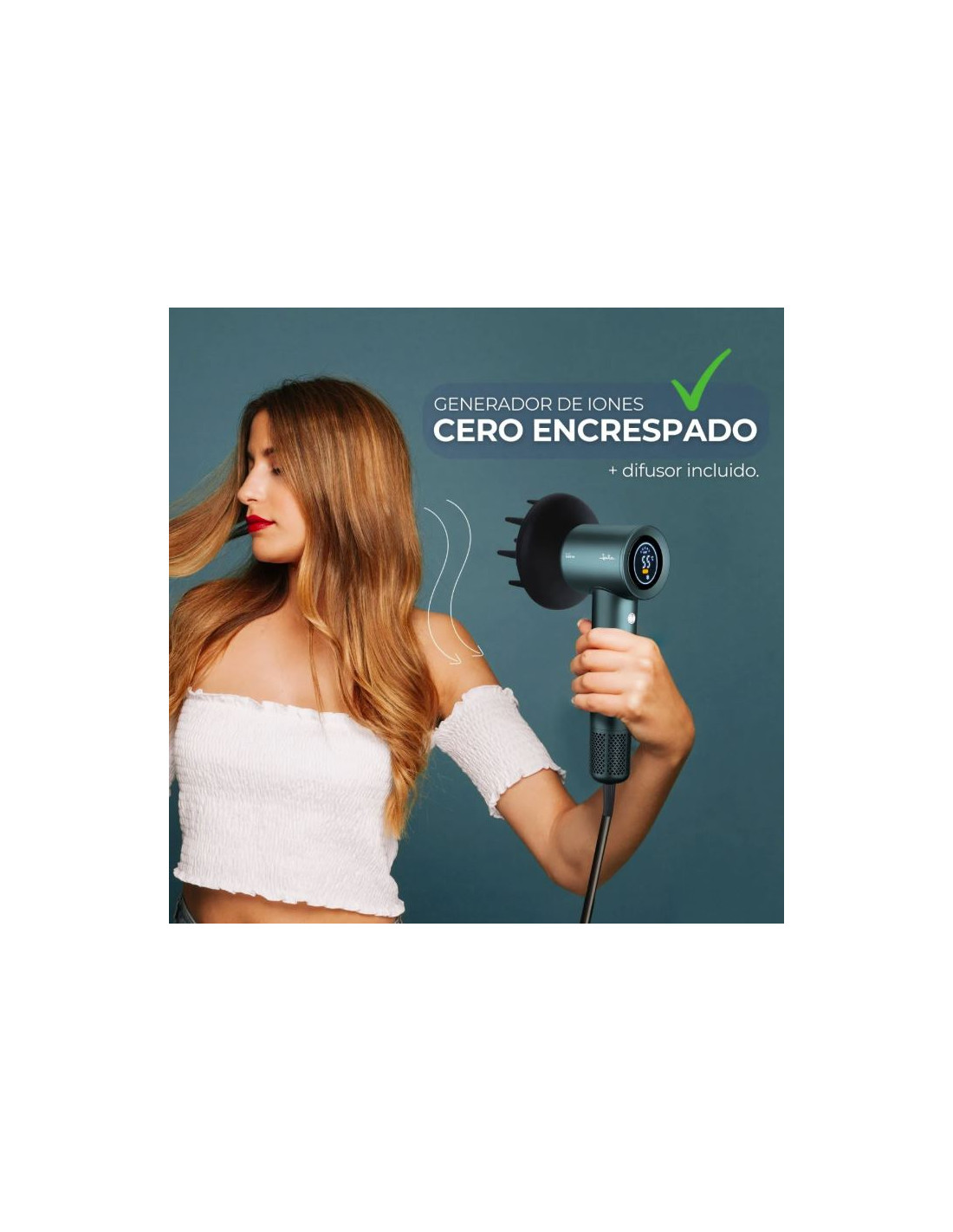 SECADOR IONICO JATA JBSC1600, Motor BLDC de alto rendimiento con 110.000 RPM Reducción de tiempo de secado y encrespamiento gracias a su generador de iones. Pantalla digital LED. Boquilla concentradora de aire. Difusor incluido. 3 posiciones de caudal de aire 0 – 1 – 2 4 posiciones de temperatura. 1. Aire frío 25º . 2. Temperatura de cuidado del cabello 55º 3. Calor 85º. 4. Temperatura oscilante para protección del cabello y anti encrespamiento 25º y 85º. Caudal de aire constante y potente. Longitud del cable: 1,8 m Compacto y ligero Voltaje 230 V. Potencia Max. 1.600 W.