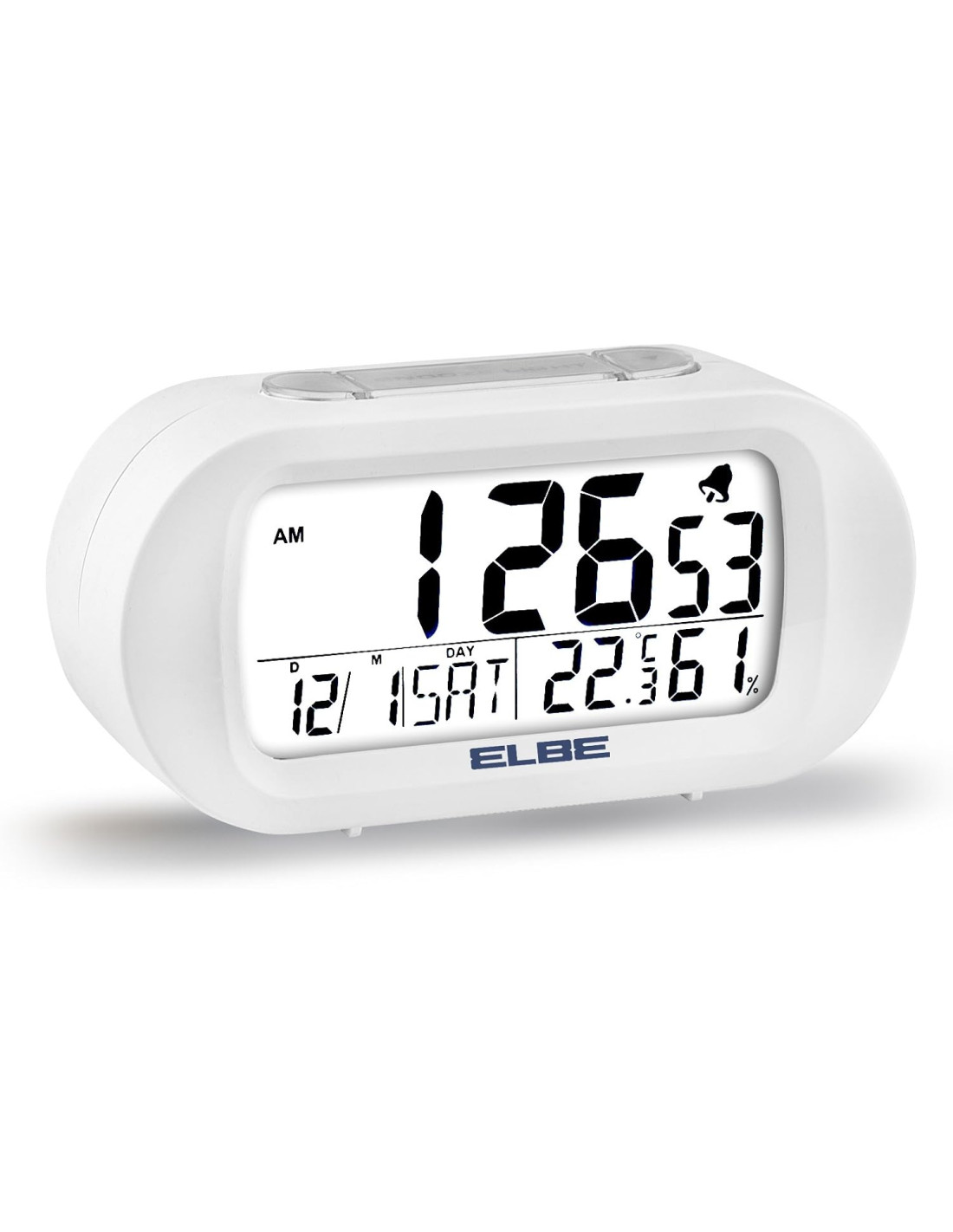 Reloj Despertador ELBE RD701B, - Reloj despertador de viaje, Medidor de temperatura y humedad, Display LCD 3,1ÆÆ / 9 cm, Función snooze, Luz de fondo, Selector de alarma, Indicador de día de la semana, Calendario, Pantalla de 12/24 horas, Pantalla de fácil lectura, Acabado color blanco, Alimentación: 3 pilas AAA (no incluidas) , Blanco