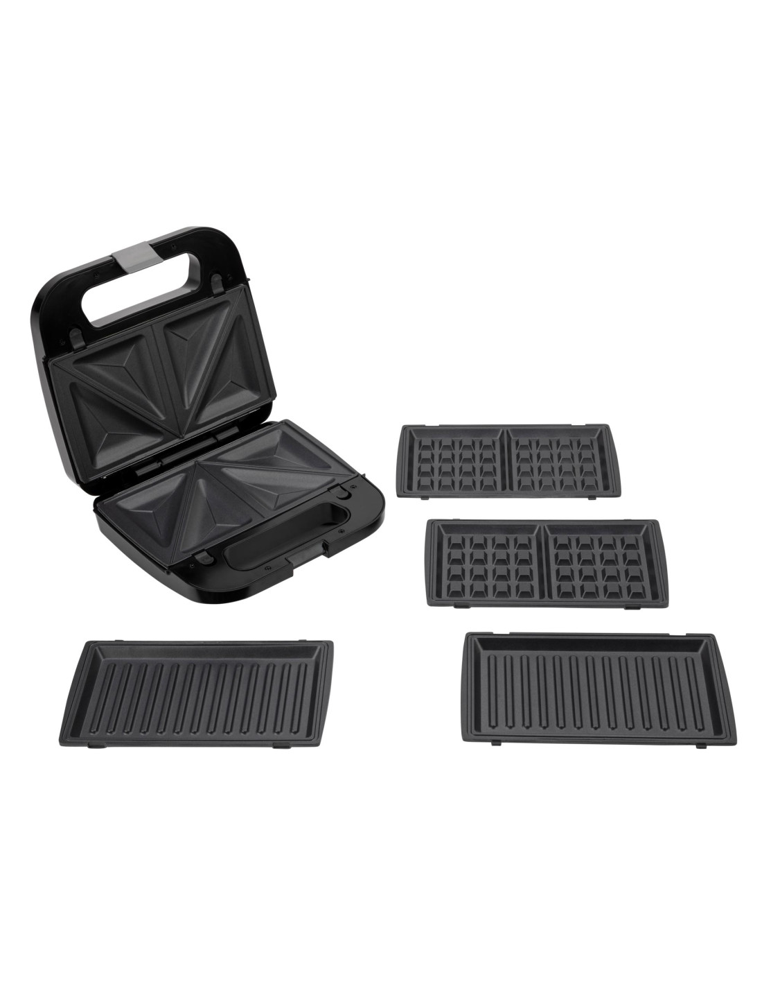 SANDWICHERA JATA JESW2010, 3 placas extraíbles e intercambiables para sandwiches triangular, gofre y grill Sellado perfecto Tostado rápido y uniforme Placas con recubrimiento antiadherente libre de PFOA