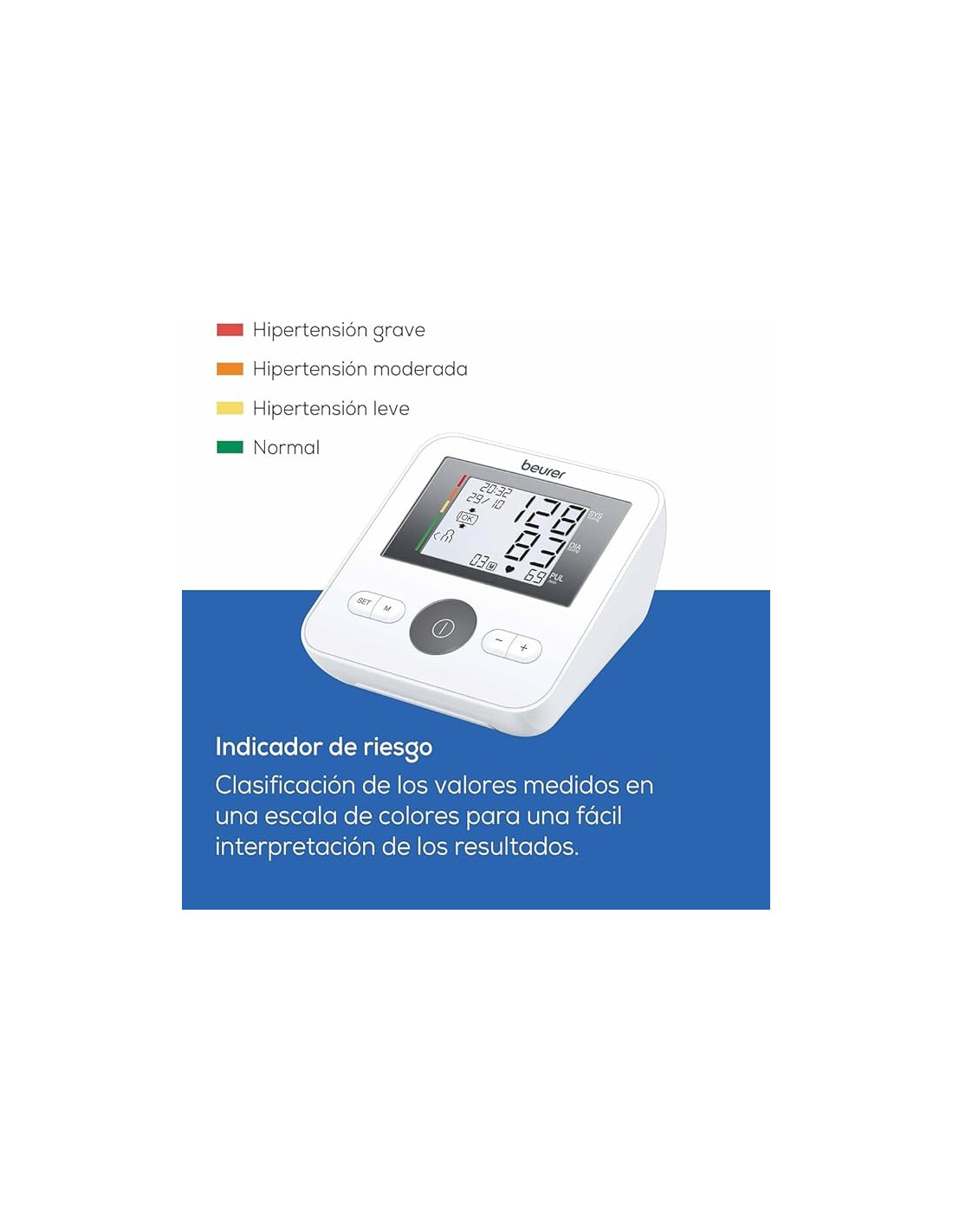 TENSIOMETRO BRAZO BEURER BM27LEBF22 TENSIOMETRO BRAZO ; Detección arritmia. ; Función OK: Indicador patentado para un resultado exacto. ; Manguito universal para circunferencias hasta 42cm.