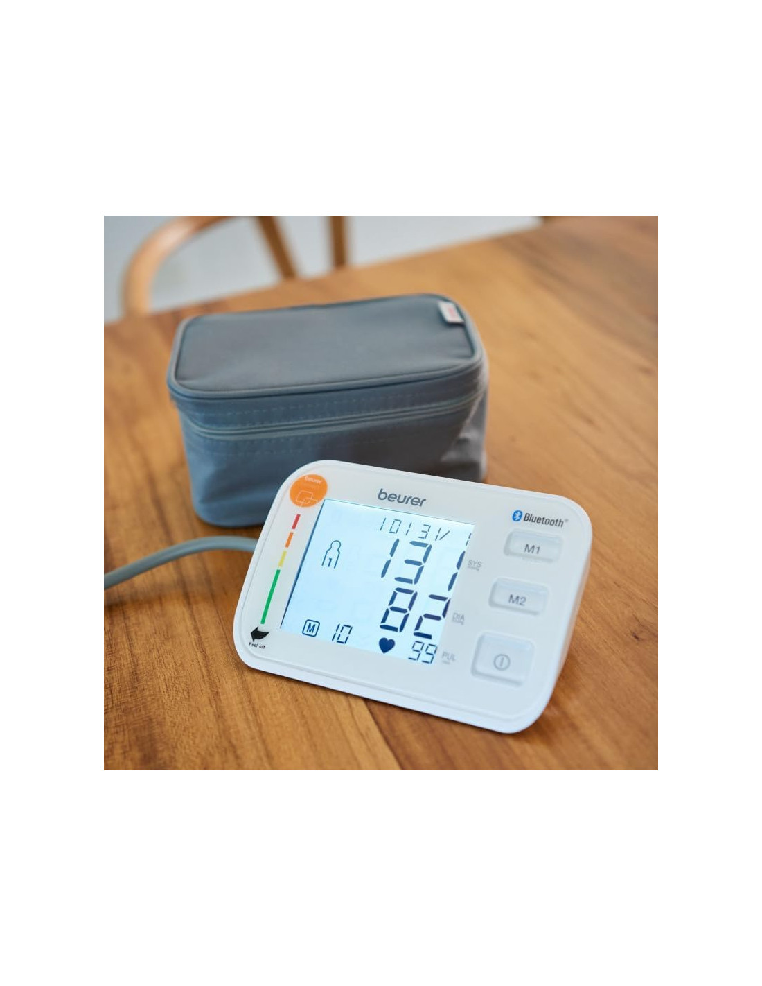 TENSIÓMETRO DE BRAZO CON BLUETOOTH BEURER SRBM1, Beurer Connect – Health Manager. - Transmisión: mediante Bluetooth® 4.0 Smart. - Clasificación de los resultados de medición con una escala de colores. - Medición automática. - Detección arritmia. - Con tabla para el registro de la tensión sanguínea. - Pantalla LCD con iluminación en blanco. - Desconexión automática. - Proceso de inicio y acabado automático. - Manguito universal circunf. hasta 43cm. - Manguito de (23-43 cm) incluido. - Memoria 2 x 60 mediciones (2 personas). - Fecha y hora. - Mensaje en caso de error. - Apto para adaptación a red. - Descarga gratuita software HeathManager. - Indicador de pilas agotadas. - Estuche y pilas (2xAA) incluidos.
