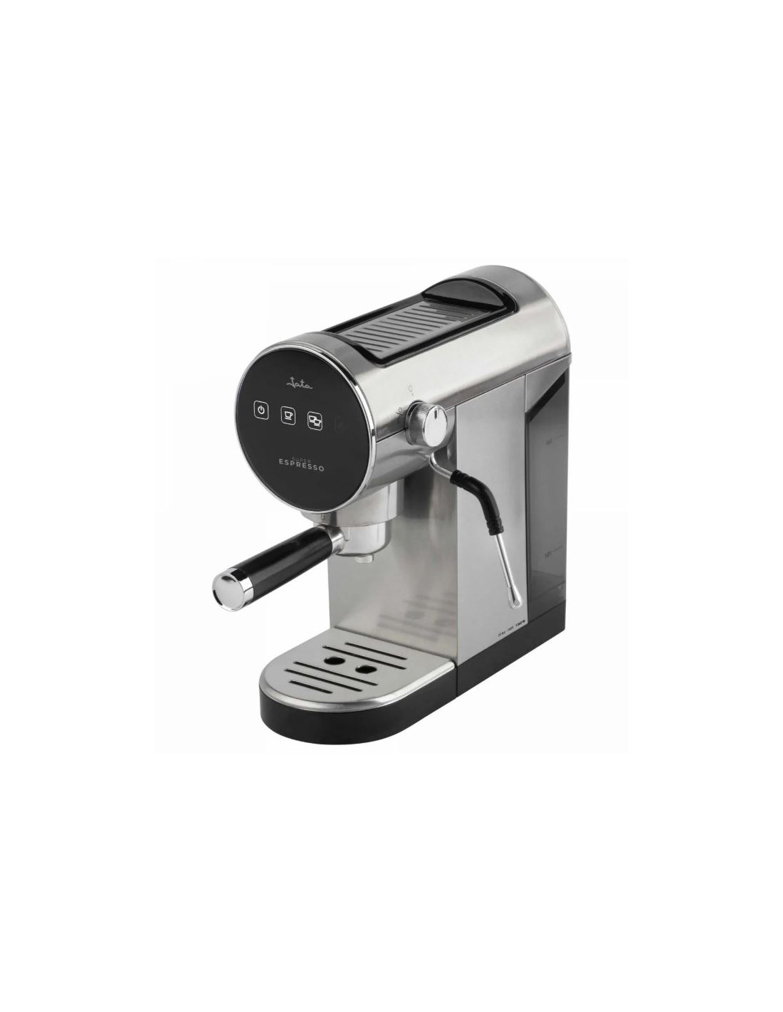 Cafetera JATA JECA2300 CAFETERA EXPRESS Presión 20 bar. Pantalla táctil: *Encendido / Apagado. *Pulsador 2 tazas. * Vaporizador.Accesorios incluidos: Porta filtros. Filtros para 1 ó 2 cafés. Dosificador.Cumple normativa de ahorro energético ERP.Memoriza la cantidad de café deseada.Desconexión automática.Regulador de vapor.Calienta tazas.Depósito de agua extraíble. Capacidad 0,9 L.Voltaje 230 V.Potencia 1360 W.