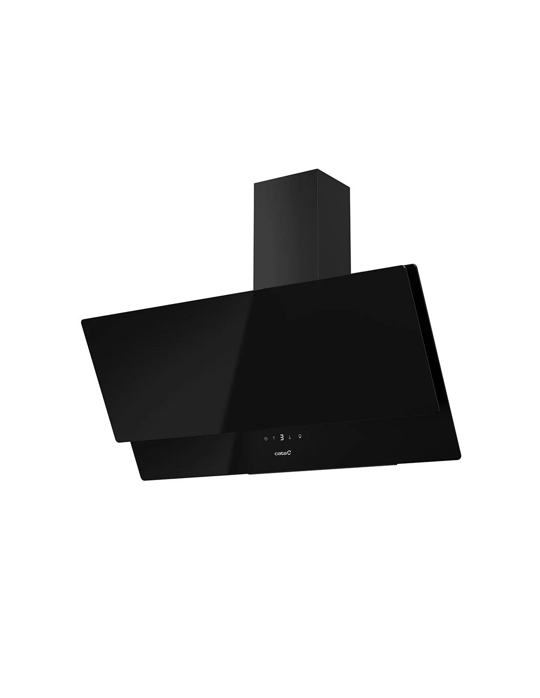 Campana decorativa vertical Cata JUNO+9000GBK, 90cm con acabado en cristal negro.Panel de Control Táctil con display digital y temporizador de desconexión automática. indicador de limpieza de filtros. 6 niveles de extracción, 5 + 1 TURBO. Capacidad de extracción máxima – mínima (Reg.(UE) nº65/2014): 575m3/h - 170m3/h. Nivel sonoro (Reg.(UE) nº65/2014): 44dB(A), máximo: 61dB(A). Motor Brushless. Extra silencioso. Consumo máximo de energía 110W. Iluminación de alta eficiencia mediante TIRA LED regulable en intensidad. Clase de eficiencia energética: A+