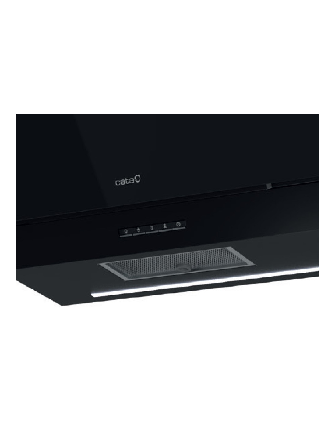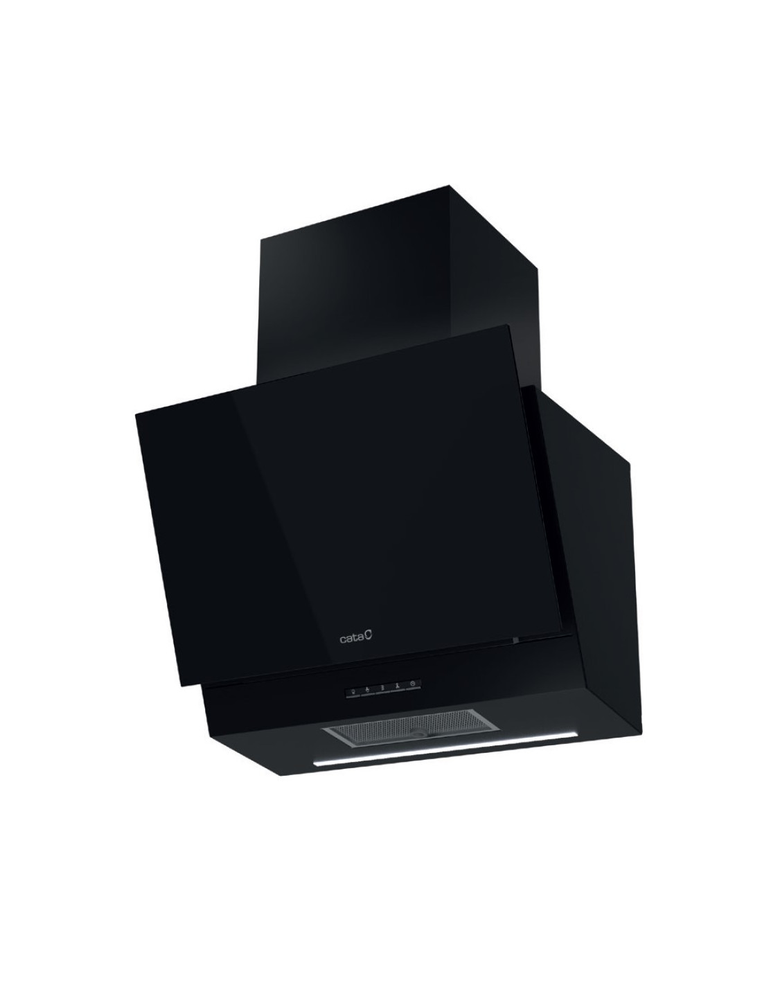 Campana decorativa vertical Cata THALASSA600GBK, cristal negro, 60cm con acabado en cristal negro. Panel de Control Táctil con display digital con temporizador de desconexión automática e indicador de limpieza de filtros. 4 niveles de extracción, 3 + 1 TURBO. Capacidad de extracción máxima – mínima (Reg.(UE) nº65/2014): 842m3/h - 200m3/h. Nivel sonoro (Reg.(UE) nº65/2014): 50dB(A), máximo: 61dB(A). Motor BT3. Extra silencioso. Consumo máximo de energía 280W. Iluminación de alta eficiencia mediante TIRA LED regulable en intensidad. Sistema de fácil instalación. Filtro antivaho. Filtros lavables en lavavajillas. Función purificación de aire. Apertura neumática del cristal. Clase de eficiencia energética: A