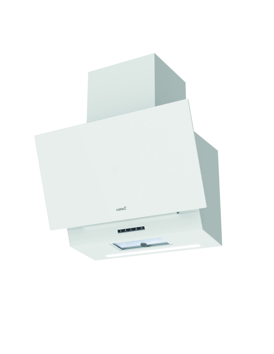 Campana decorativa vertical Cata THALASSA700GWH, cristal blanco, 70cm con acabado en cristal blanco. Panel de Control Táctil con display digital con temporizador de desconexión automática e indicador de limpieza de filtros. 4 niveles de extracción, 3 + 1 TURBO. Capacidad de extracción máxima – mínima (Reg.(UE) nº65/2014): 842m3/h - 200m3/h. Nivel sonoro (Reg.(UE) nº65/2014): 50dB(A), máximo: 61dB(A). Motor BT3. Extra silencioso. Consumo máximo de energía 280W. Iluminación de alta eficiencia mediante TIRA LED regulable en intensidad. Sistema de fácil instalación. Filtro antivaho. Filtros lavables en lavavajillas. Función purificación de aire. Apertura neumática del cristal. Clase de eficiencia energética: A