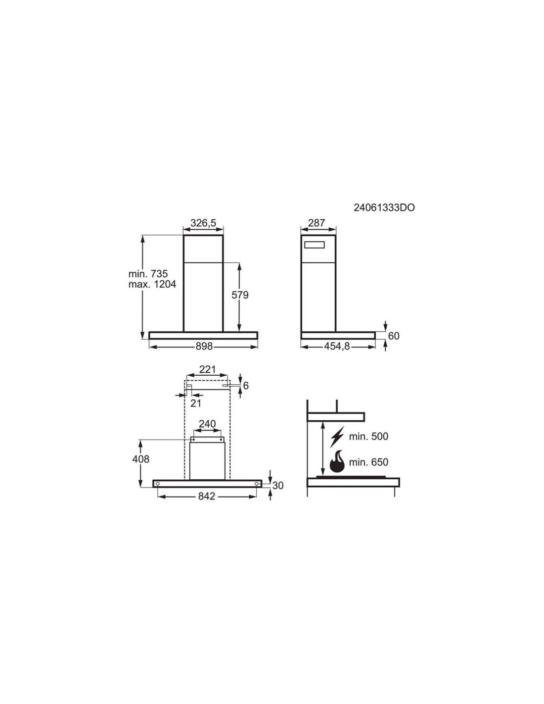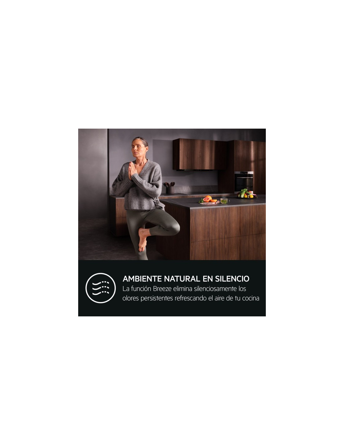 Campama decorativa Aeg GB87D91CB,Serie 8000 AuroraTech, 90cm, 55 dB, Velocidades 3+2 Intensive; Breeze function; SilenceTech Range, 760 m3/h, Controlo táctil en el cristal, AuroraTech; Perfect Illumination Tira de LED, Acero negro mate/panel cristal negro glossy