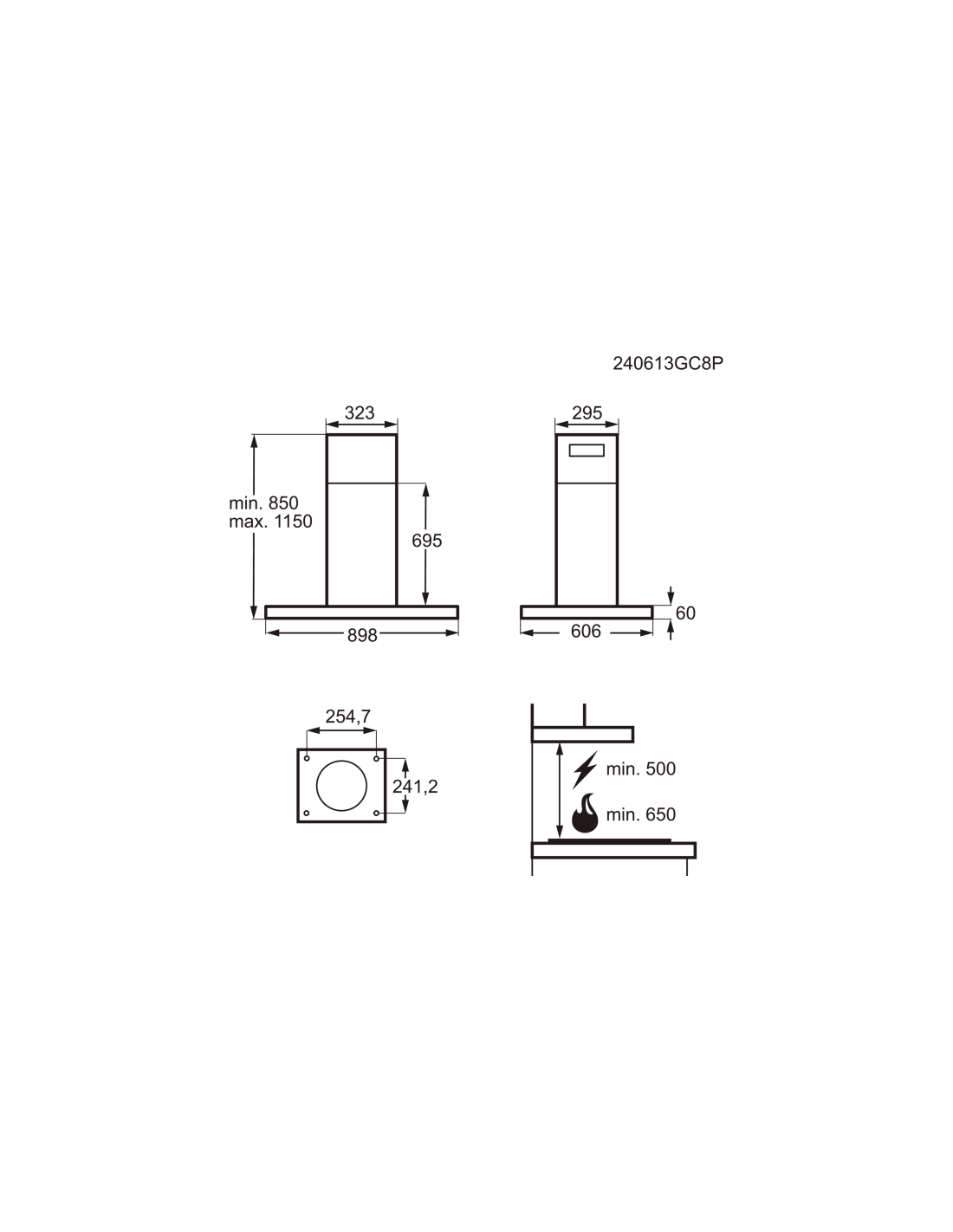 Campama decorativa Aeg GI87D91CB,Serie 8000 AuroraTech, 90cm, 55 dB, Velocidades 3+2 Intensive; Breeze function; SilenceTech Range, 760 m3/h, Controlo táctil en el cristal, AuroraTech; Perfect Illumination Tira de LED, Acero negro mate/panel cristal negro glossy
