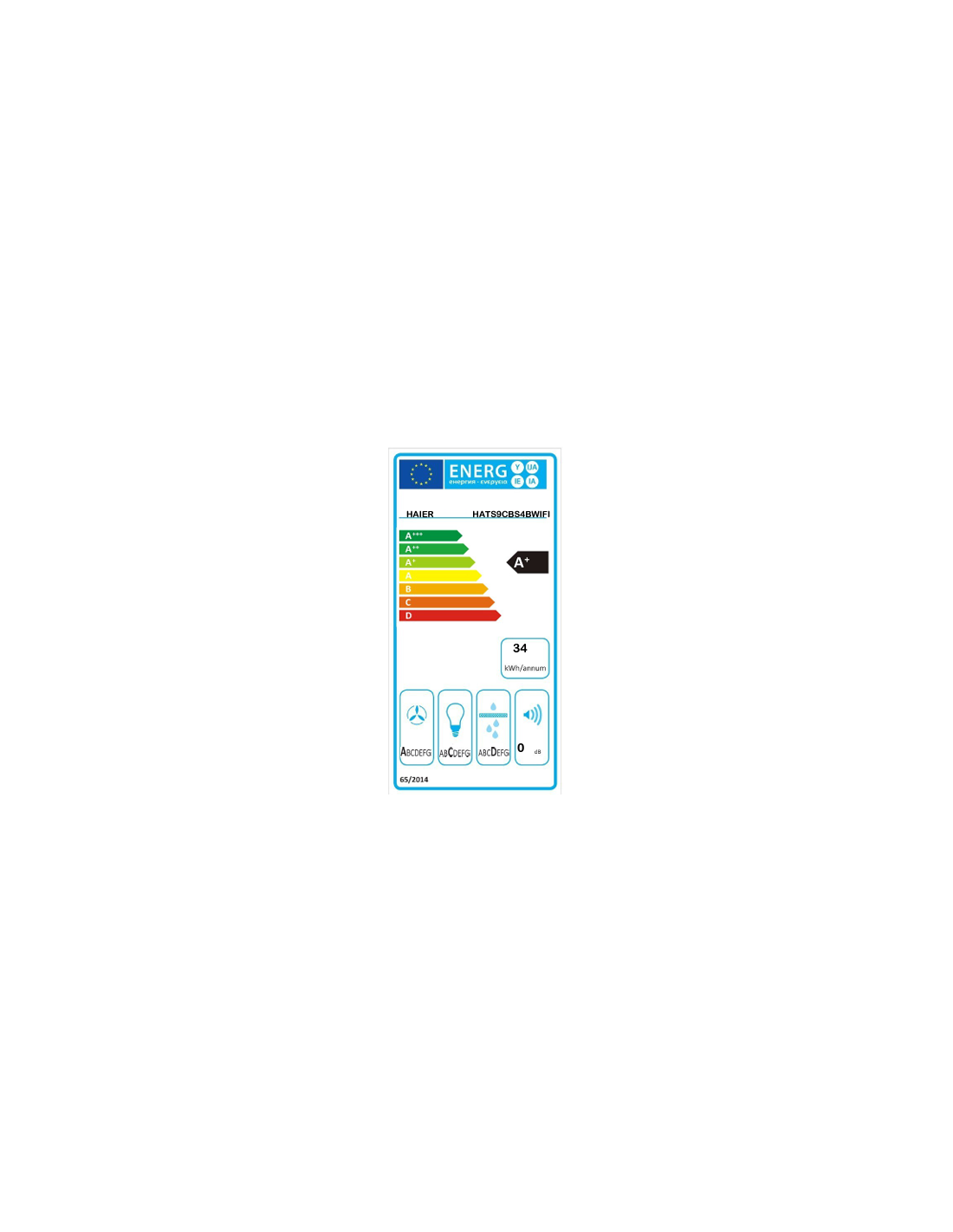 Haier I-Link HATS9CBS4BWIFI. Máxima capacidad de extracción: 591 m³/h, Tipo de extracción: Canalizado, Clasificación eficiencia dinámica de fluidos: A. Tipo: De pared, Color del producto: Negro, Tipo de control: Tocar. Potencia de bombilla: 8 W, Número de bombillas: 1 bombilla(s), Tipo de bombilla: LED. Clase de eficiencia de energía: A+, Consumo de energía anual: 34 kWh, Escala de eficiencia energética: A+++ a D. Ancho: 600 mm, Profundidad: 504 mm, Altura (máx.): 102,7 cm