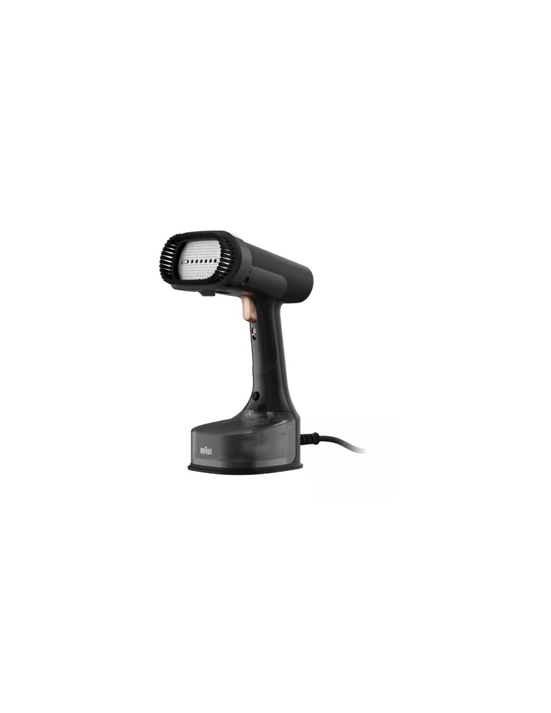 Plancha vertical BRAUN GS7077BK 1600 W. Flujo de vapor 35 g/min. Suela Dual FreeGlide 3D. Suela térmica. Depósito de 250ml. . Tiempo de calentamiento 35 seg. Cepillo y gancho de sujeción.