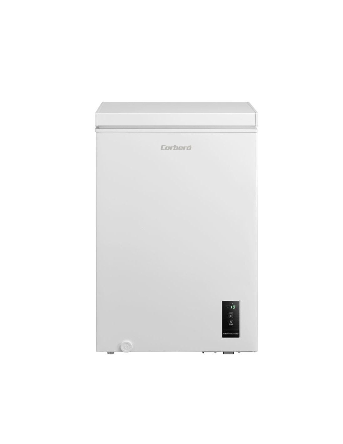 Congelador horizontal Corbero CCHM1006M, Serie Dual System, Congelador Arcón, 85x54,7x44,6cm, Capacidad 99 L, Color Blanco, Control Electrónico Con Display, 1 Cesta Interior, 2 Patas Ajustables, 2 Ruedas, 38 Db, Eficiencia Energética "E