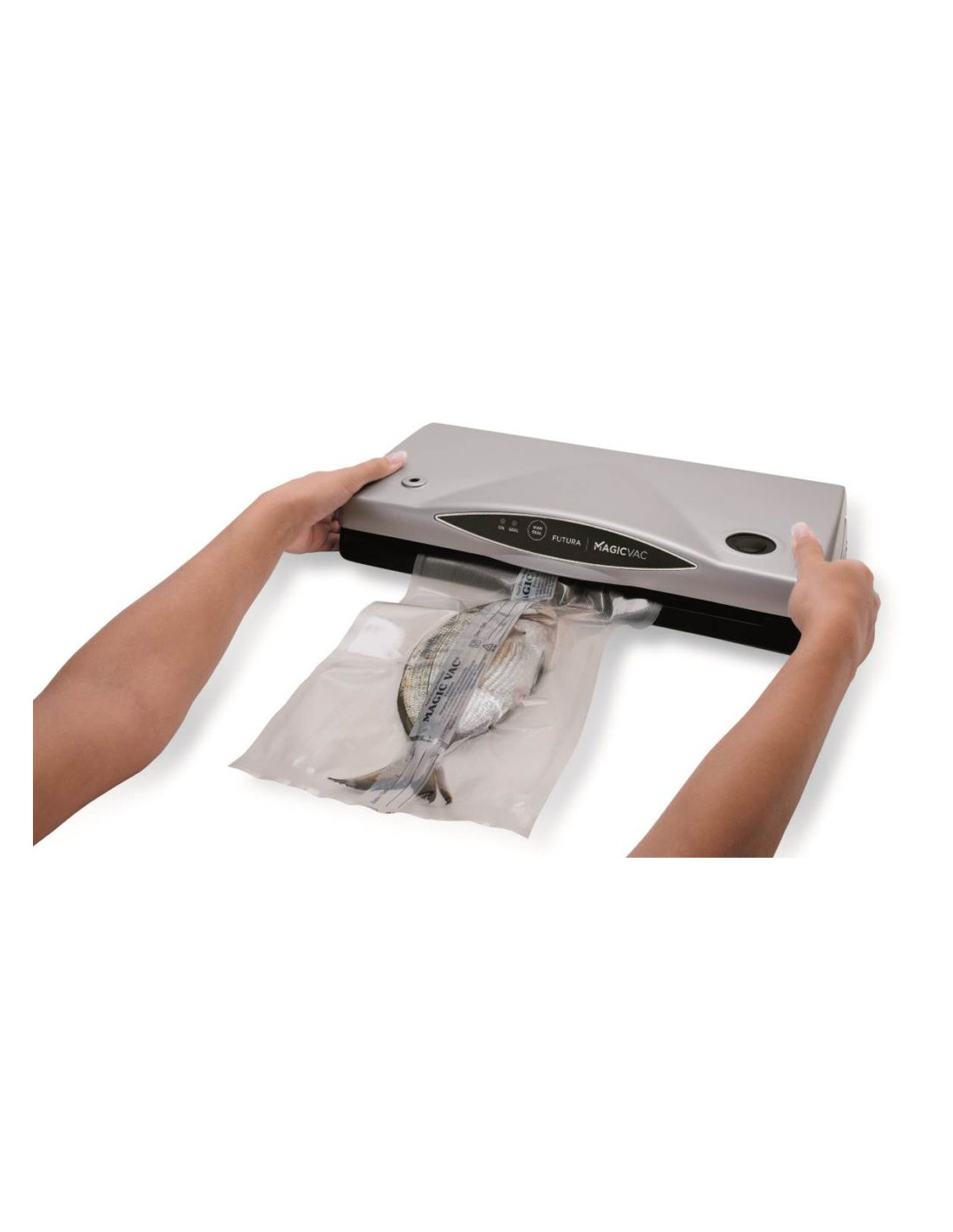ENVASADORA VACIO MAGIC VAC FUTURA ENVASADORA VACIO ; Rendimiento profesional gracias a la potente bomba. ; Bandeja de retención de líquidos extraíble y apta para lavavajillas. ; Barra de sellado: 30 cm.