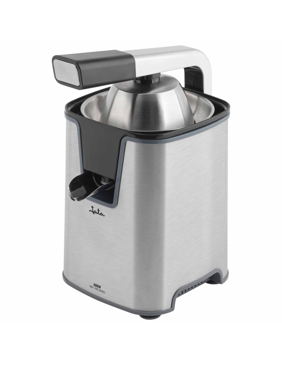 Exprimidor JATA JEEX1155 EXPRIMIDOR INOX CON BRAZO Gran potencia 600 W.Motor profesional AC. Cuerpo, filtro y vertedor en acero inoxidable.Máxima eficacia.Sistema antigoteo.Palanca de presión para facilitar la extracción del zumo.Silencioso.Extracción continua.Incluye dos conos de diferente tamaño para exprimir todo tipo de cítricos.Base antideslizante.Desmontable para su fácil limpieza.Voltaje 230 V.