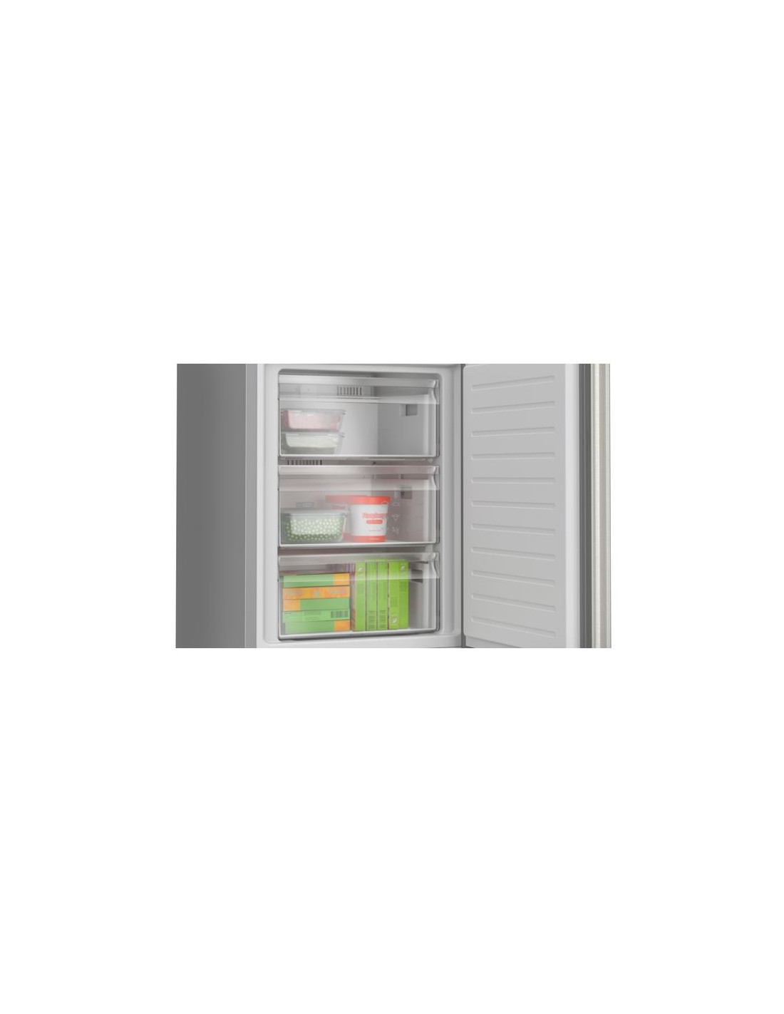 Bosch Serie 4 KGN362ICF. Capacidad neta total: 321 L. Bisagra para puerta: Derecho. Clase climática: SN-T, Nivel de ruido: 35 dB. Frigorífico, capacidad neta: 218 L, Antiescarcha (nevera), Sistema multi-flujo de aire (nevera), Luz interior de la nevera. Congelador, capacidad neta: 103 L, Capacidad de congelación: 9,5 kg/24h, Antiescarcha (congelador). Compartimiento de zona fresca. Clase de eficiencia de energía: C, Consumo de energía anual: 159 kWh. Color del producto: Acero inoxidable