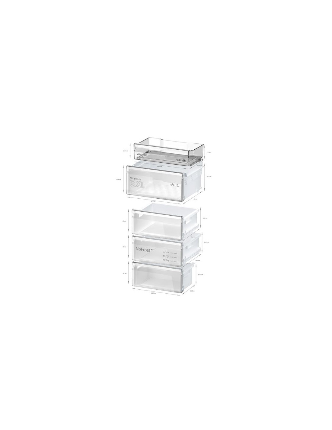 Combi NF Bosch KGN362WCF, Frigorífico combinado NoFrost, Clase energetica "C, Libre instalación, 186x60x66,5cm., 321 l., Blanco, VitaFresh XXL.Tirador vertical integrado.