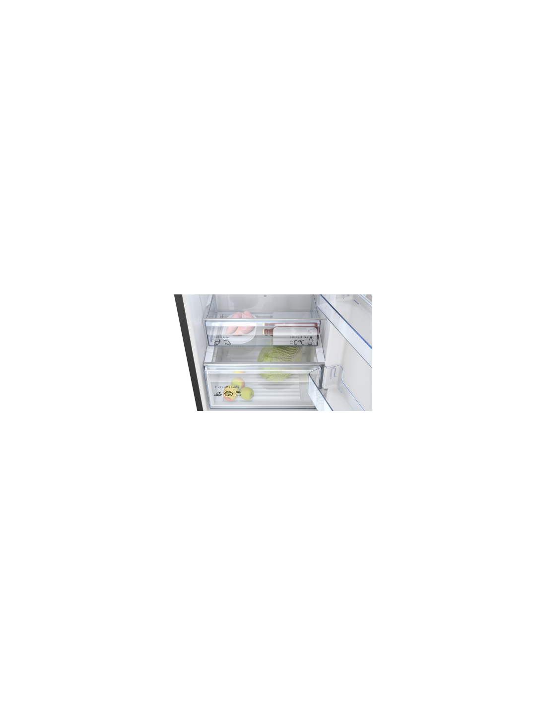 Combi NF Balay 3KFD655NI, Frío, Frigorífico combinado NoFrost, Clase energetica "D, Libre instalación, 186x60x66,5cm., 326 l., Puertas Cristal negro, ExtraCold/ExtraFresh. Tirador vertical integrado.